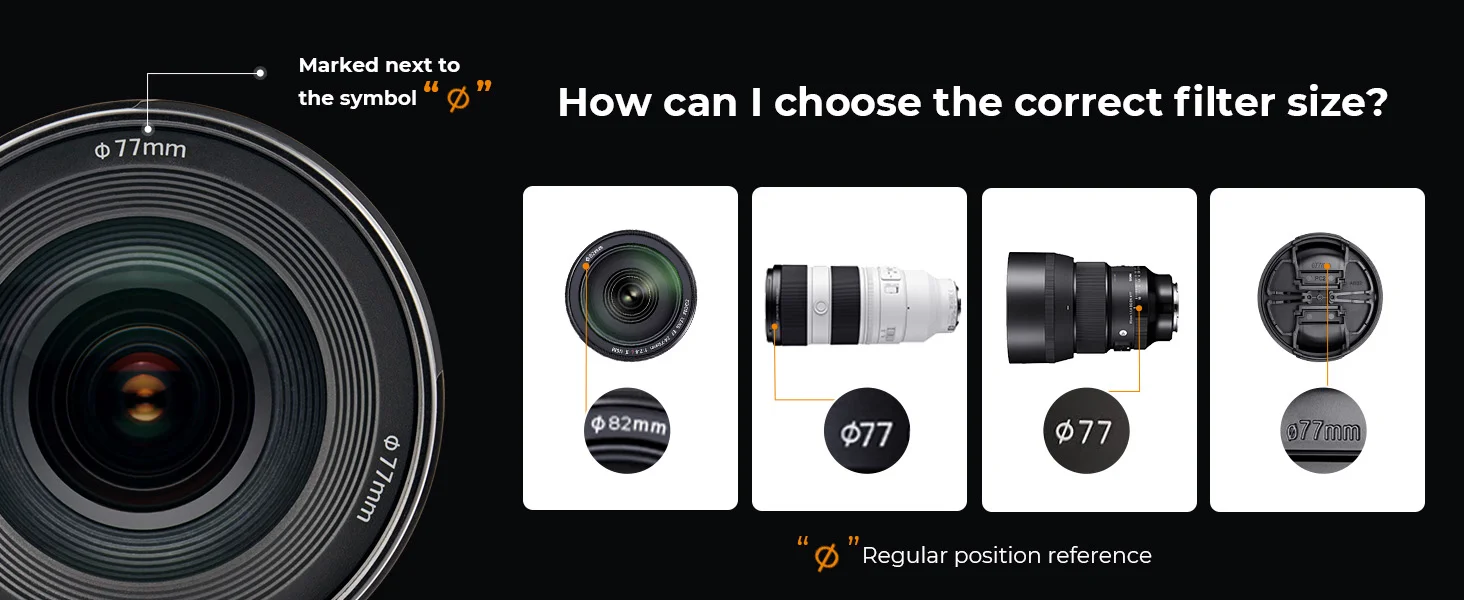 【주의】 이 검은색 확산 1/4 필터는 모든 49mm 52mm 55m 58mm 62mm 67mm 77mm 82mm 렌즈와 호환됩니다. 주문하기 전에 카메라의 렌즈 실 크기를 확인하십시오. 이 숫자는 항상 "ø" (직경) 기호로 옆에 있습니다.