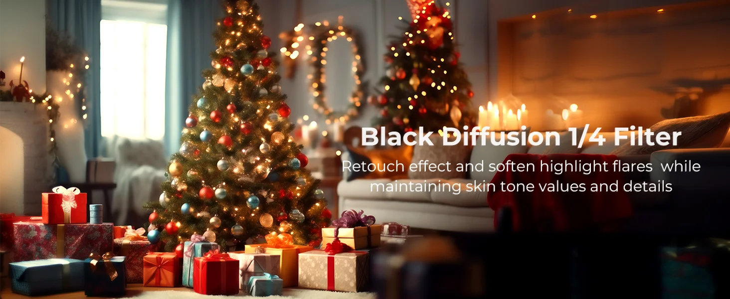 【소프트 하이라이트 플레어, 낮아진 대비】 이 블랙 확산 1/4 필터는 얼굴 피부의 주름, 주근깨 및 모공을 부드럽게 할 수있어 더욱 섬세하고 통통하며 화려합니다. 안개 꿈 효과는 더 잘 실현되어 영화 효과를 몽환적으로 보여줍니다.