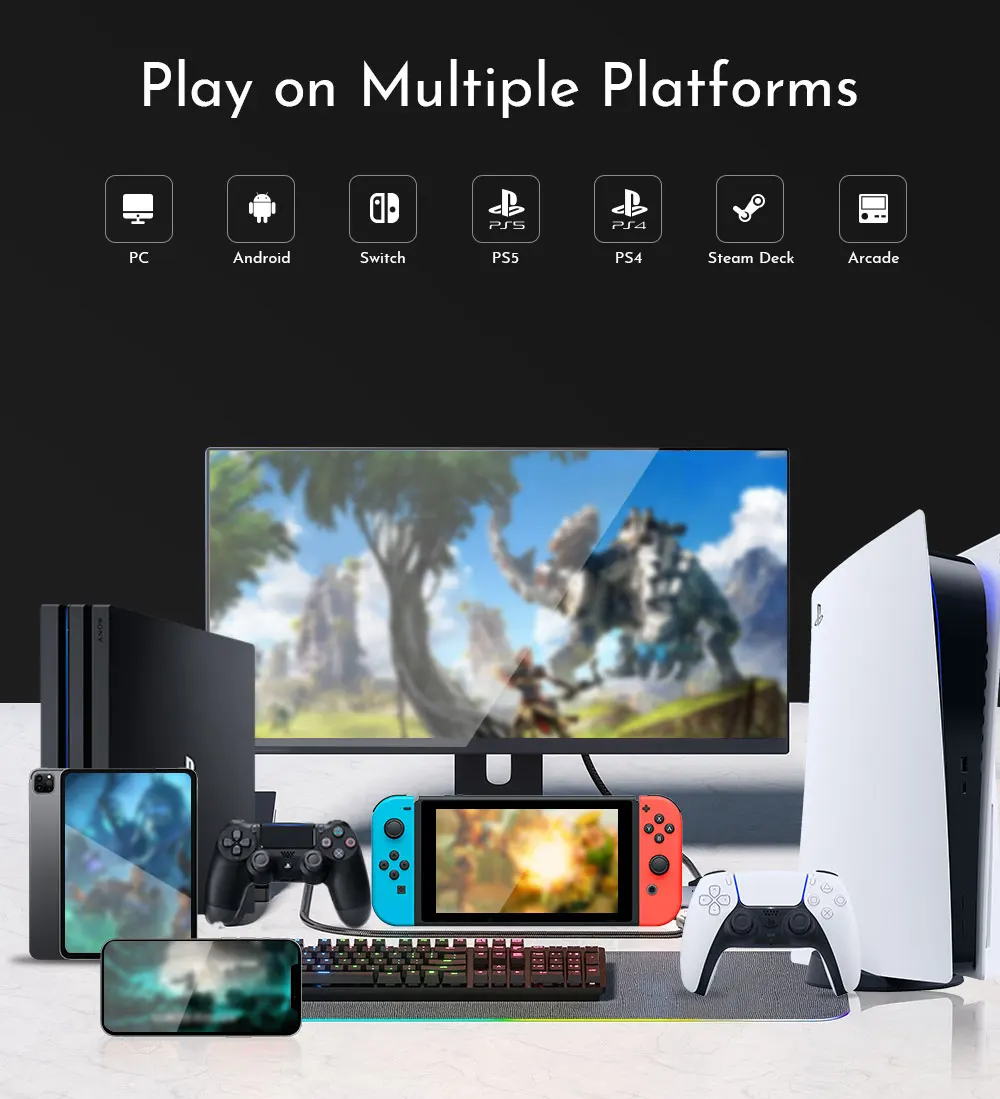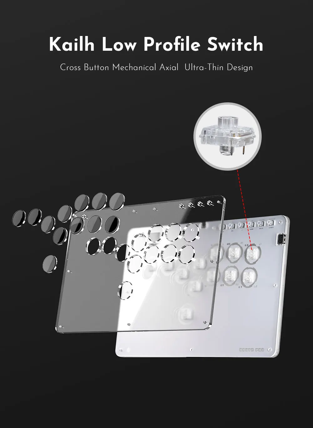 이것은 크리스탈 스위치로 만든 레버리스 컨트롤러로 완전히 흰색이고 완벽하여 저항 할 수 없습니다. RGB 조명 효과는 투명도가 뛰어나 게임에 몰입 할 수 있습니다.