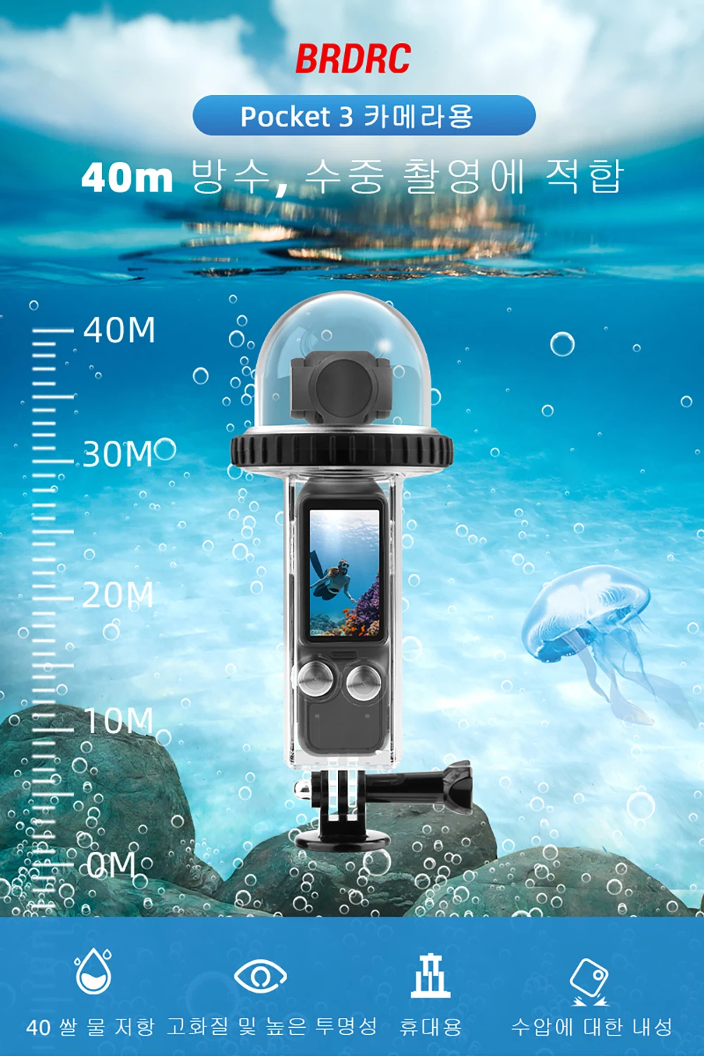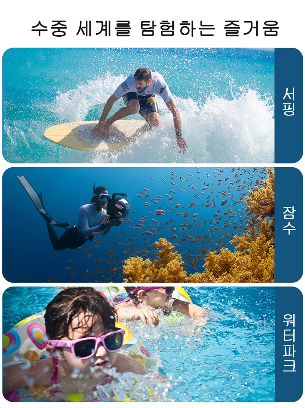 1. 수영, 다이빙, 서핑 및 기타 수중 사진에 적합한 최대 40 미터 깊이의 방수 보호,