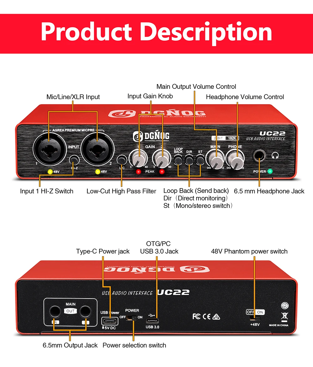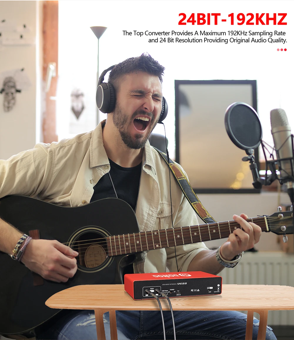 【 24 비트/192 kHz 전문 오디오 품질】마이크, 일렉트릭 기타, 베이스 등의 모든 연결 인터페이스가있는 오디오 인터페이스 여기에는 콘덴서 마이크용 + 48V 팬텀 전원 공급 장치 및 HI-Z 마이크 프리앰프가 포함됩니다. UC22 오디오 인터페이스는 최적의 음질을 위한 스튜디오 등급의 24 비트/192 kHz 변환기가 있습니다. 가수, 작곡가, 프로듀서이거나 녹음 중에 동반해야하는 경우 매우 안정적인 UC22 오디오 인터페이스는 디지털 분야에서 빛을 발하는 데 도움이됩니다.