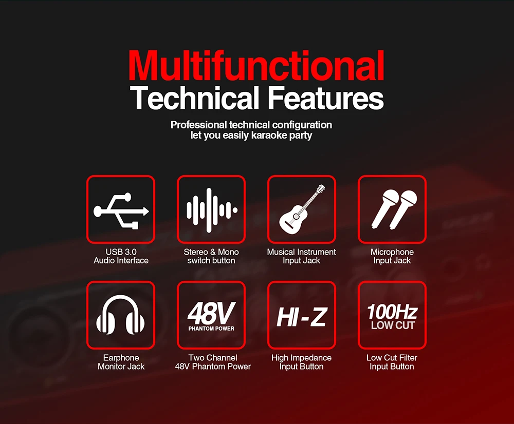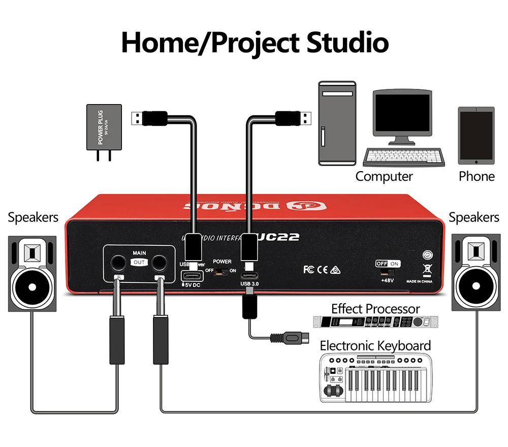 【PC 전원/DC 5V 인 이중 전원 스위치】사운드 카드에는 직접 기록을 만들고 전원을 공급할 수있는 PC 또는 iOS 장치와 연결하기위한 USB 3.0 포트가 있습니다. IPad 또는 버스 전원이 충분하지 않은 다른 장치에 연결된 경우 전원 공급을 위해 전원을 5V DC 포트로 전환 할 수 있습니다. 전원 안정성을 보장하기 위해 표준 USB 전원 어댑터 또는 외부 USB 모바일 배터리를 삽입 할 수 있습니다. 다양한 전원 공급 방식으로 언제 어디서나 사운드 카드를 사용할 수 있습니다.