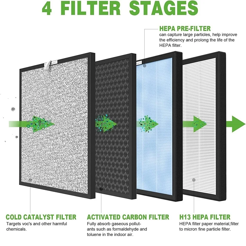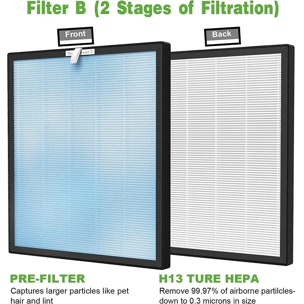 향상된 공기 질: HSP001 교체 필터로 가정의 공기 질을 개선합니다. 이 패키지에는 먼지, 연기, 애완 동물 비듬 등을 효과적으로 포착하고 제거하기위한 2 개의 True HEPA (H13) 필터와 2 개의 탄소 프리 필터가 포함되어 있습니다.