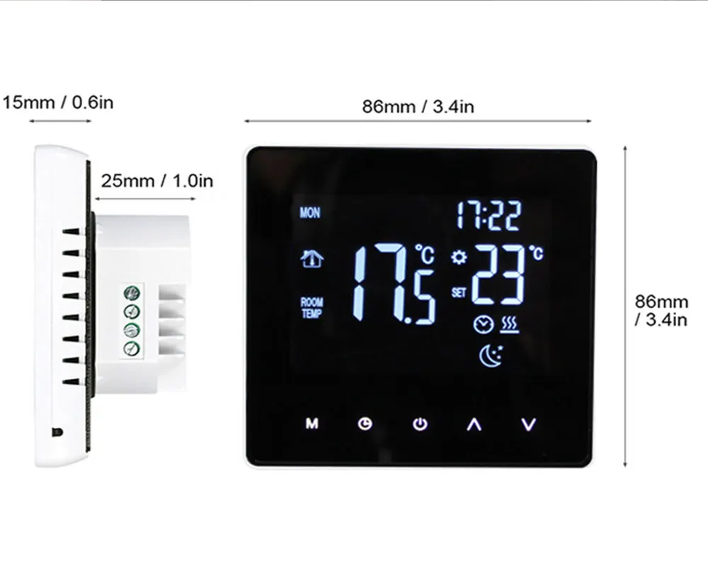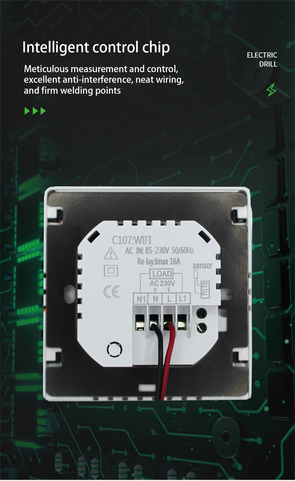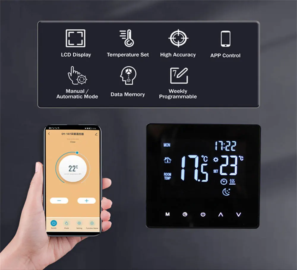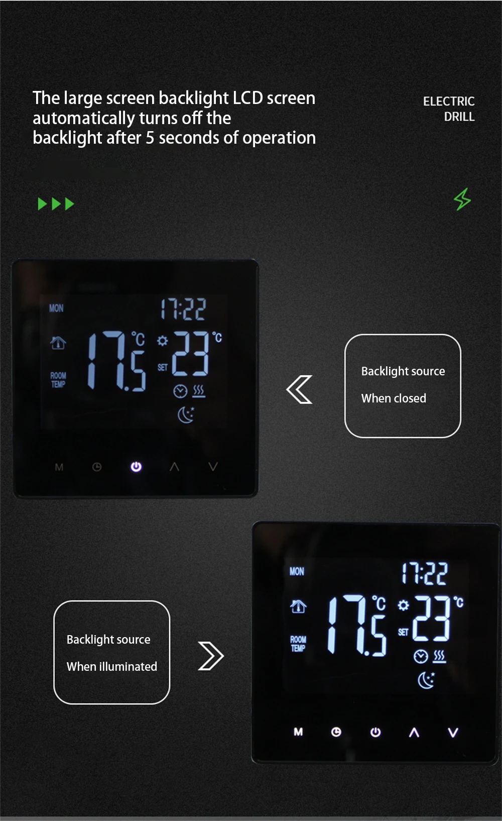 3. 정확한 온도 감지: 서모 스탯에는 내부 센서와 바닥 센서가있어 주변 온도와 바닥 온도를 각각 감지합니다. 자동 온도 수집으로 0.5 ° C의 정확도를 갖습니다.