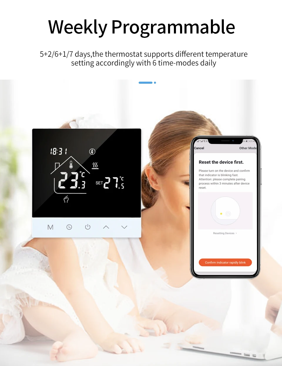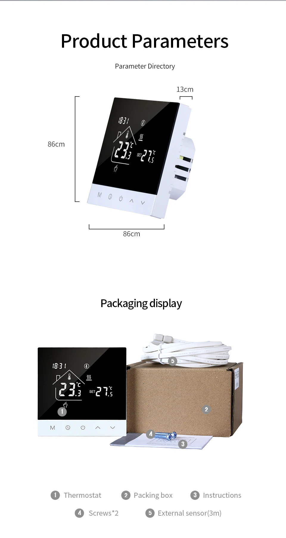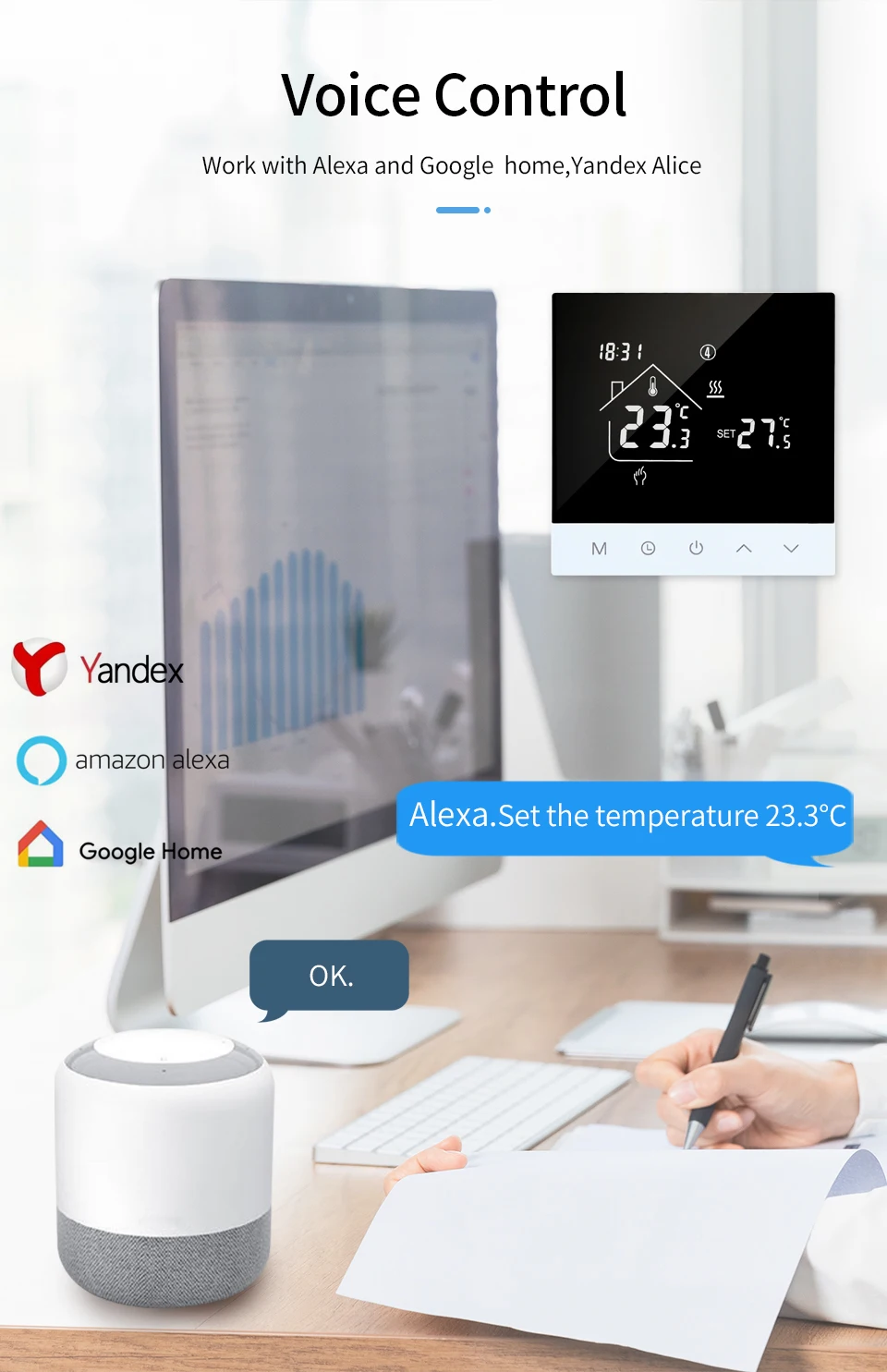 S4HGB 와이파이 스마트 난방 온도조절기 LCD 디스플레이 음성 제어 알렉사 투야 앨리스 전기 물 바닥 온도