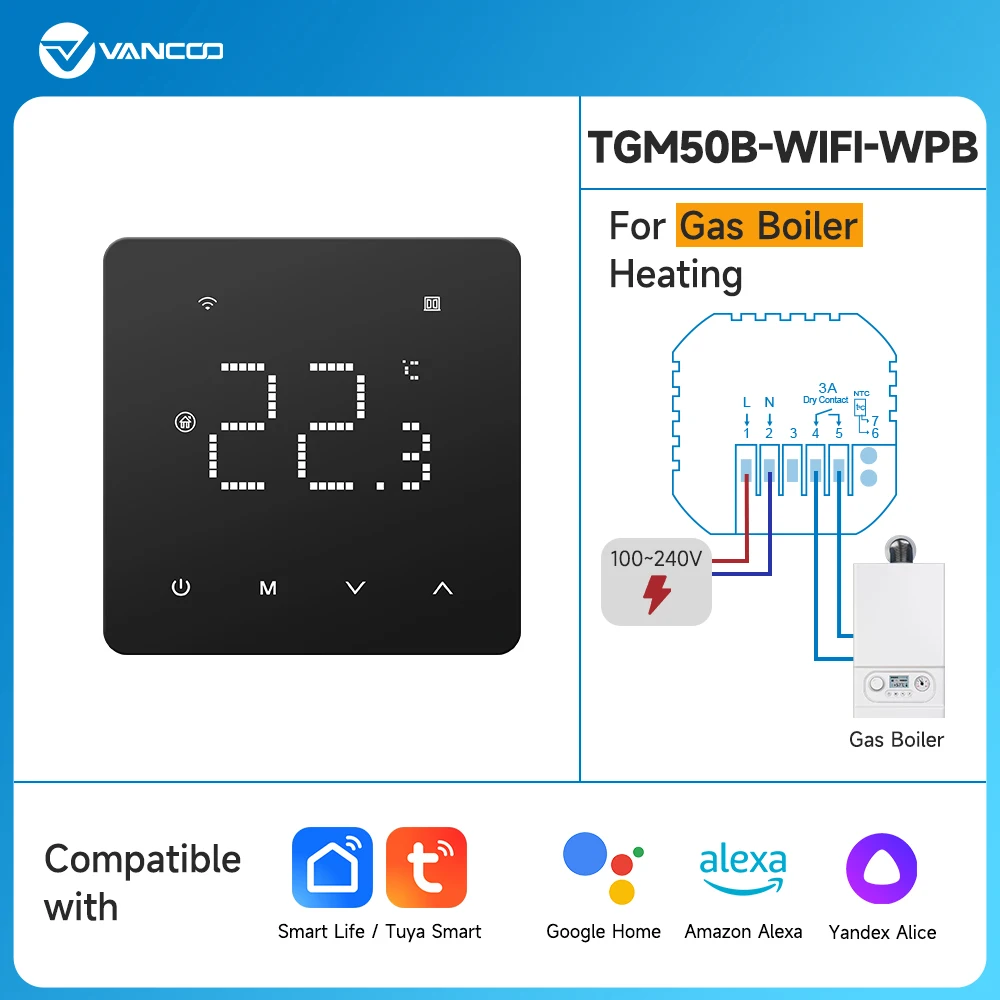 TGM50-WIFI-WPB: 제어 가스 보일러/전기 보일러 및 "Dry Connect" 를 통해 연결된 기타 장비.