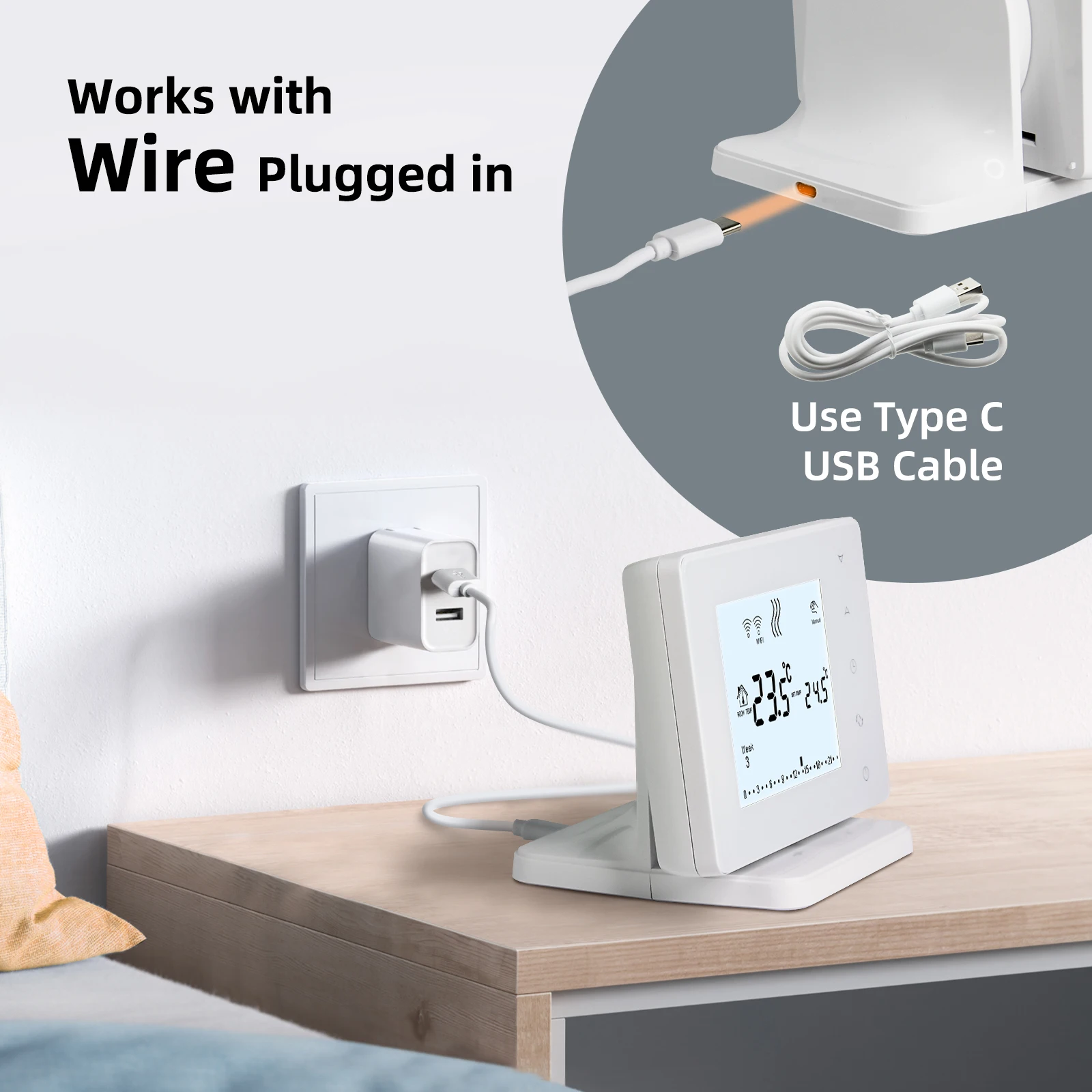 USB 전원 무선 및 와이파이 온도 조절기. Beok Home APP와 작업 할 수 있으며 Google Home 및 Alexa와 작업 할 수 있습니다. 테이블 위에 놓을 수만 있습니다.