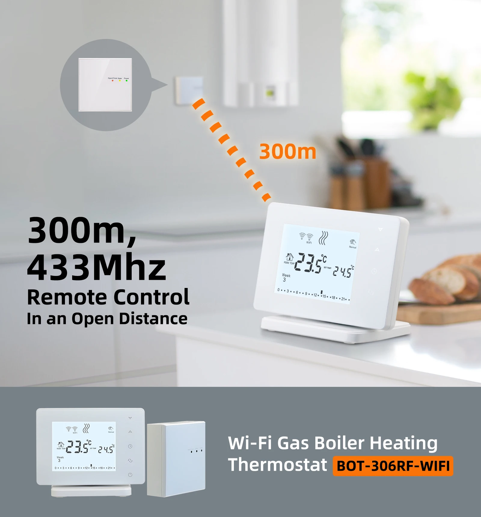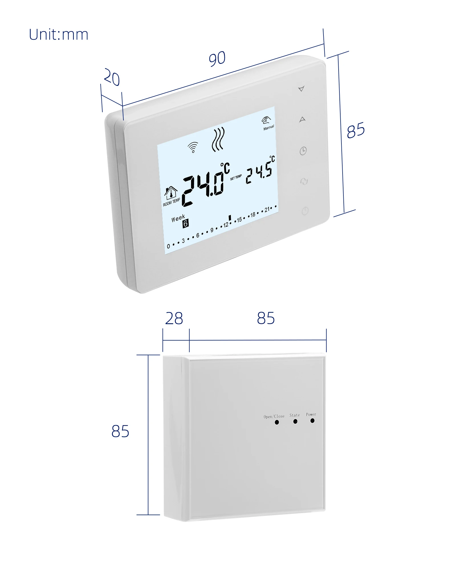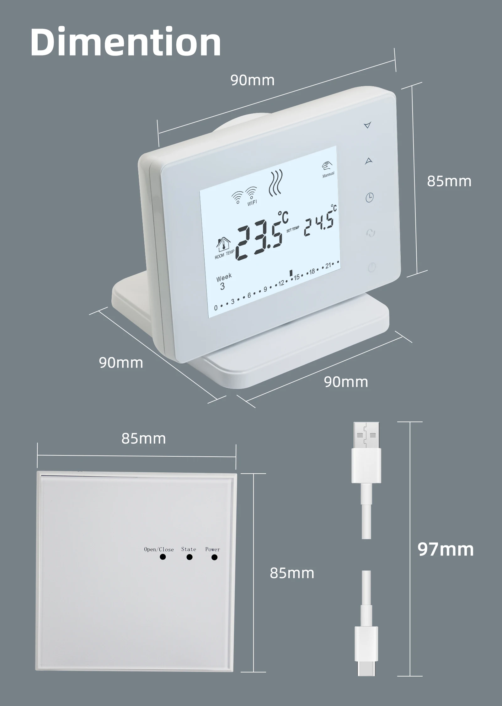 배터리 구동 무선 온도 조절기. WIFI 기능이 없습니다. 테이블 위에 놓거나 벽에 걸 수 있습니다.