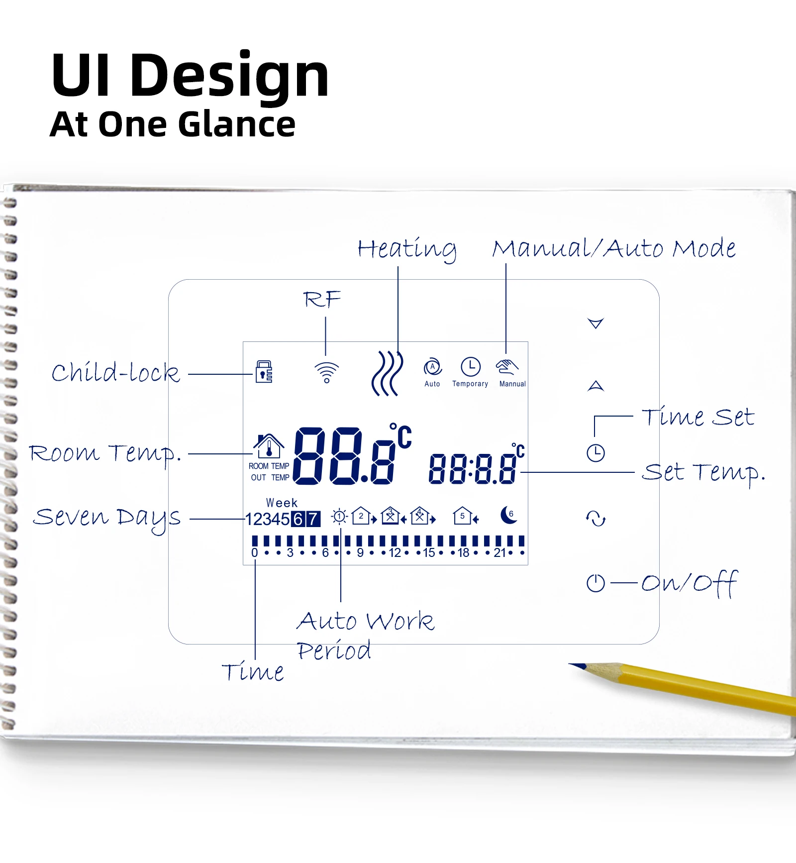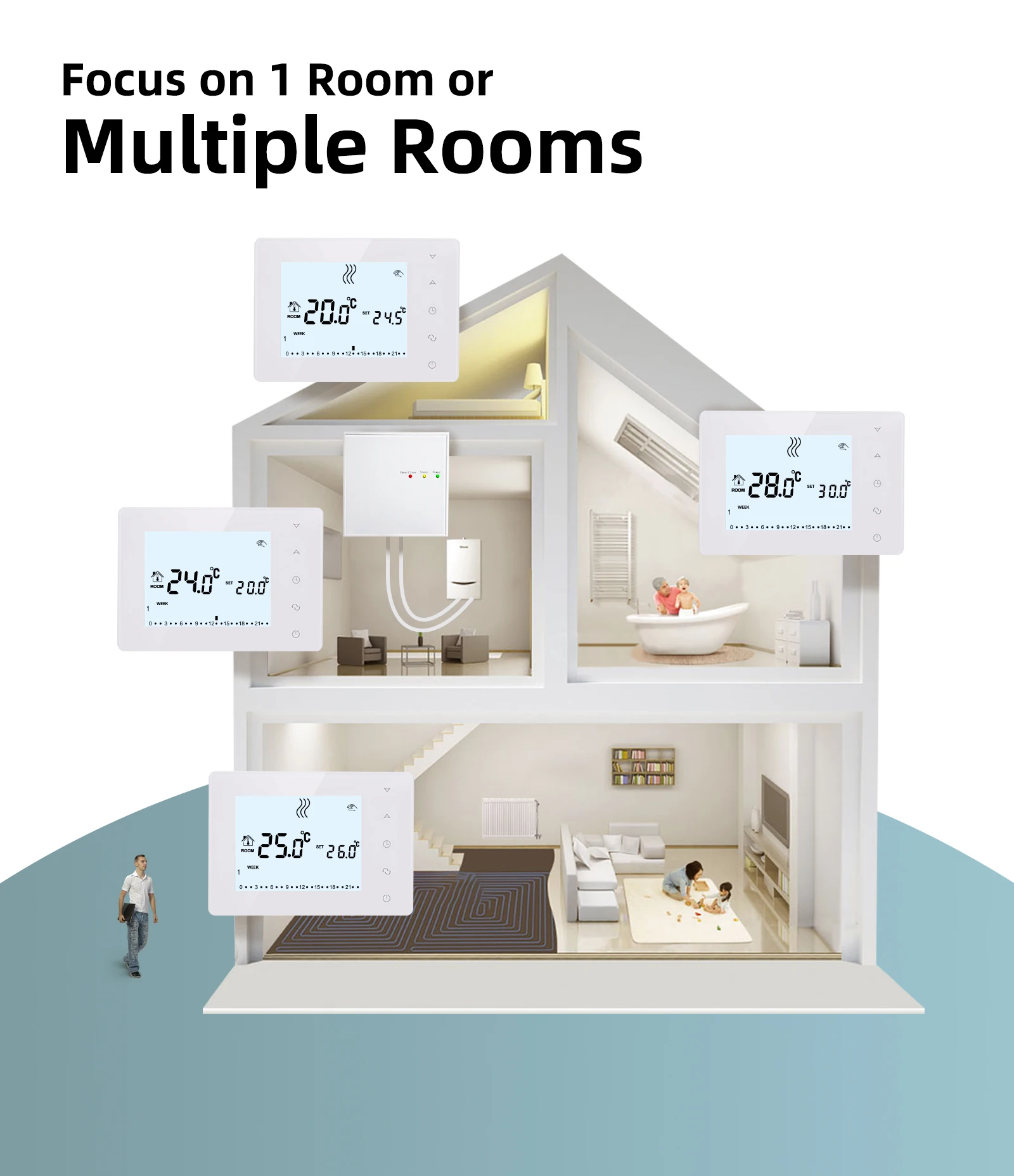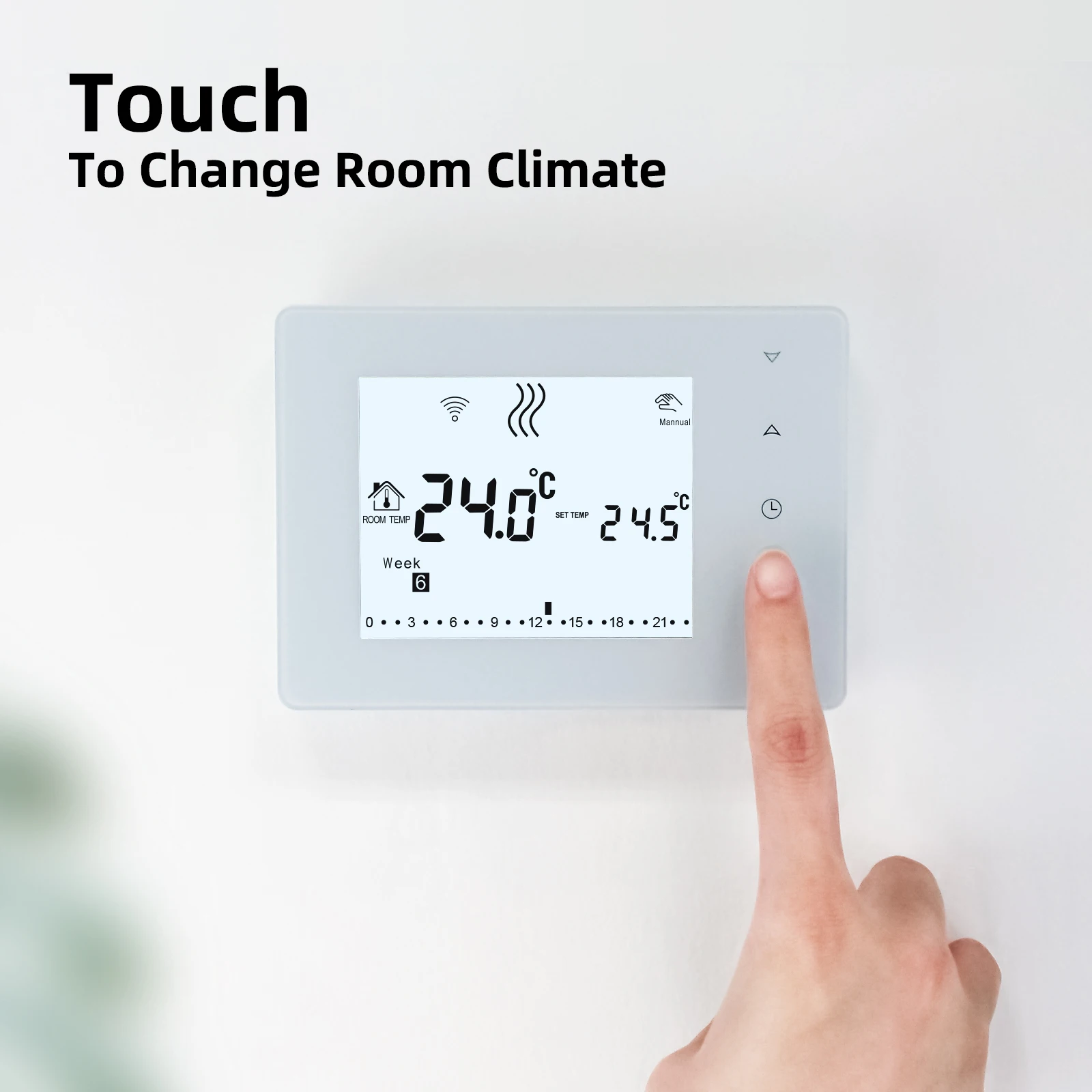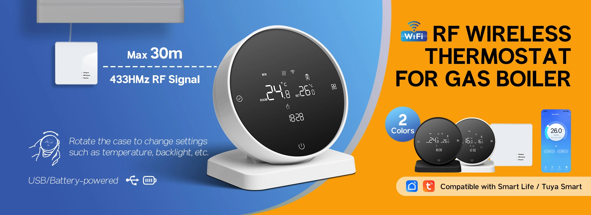 배터리 구동 무선 온도 조절기. WIFI 기능이 없습니다. 테이블 위에 놓거나 벽에 걸 수 있습니다.