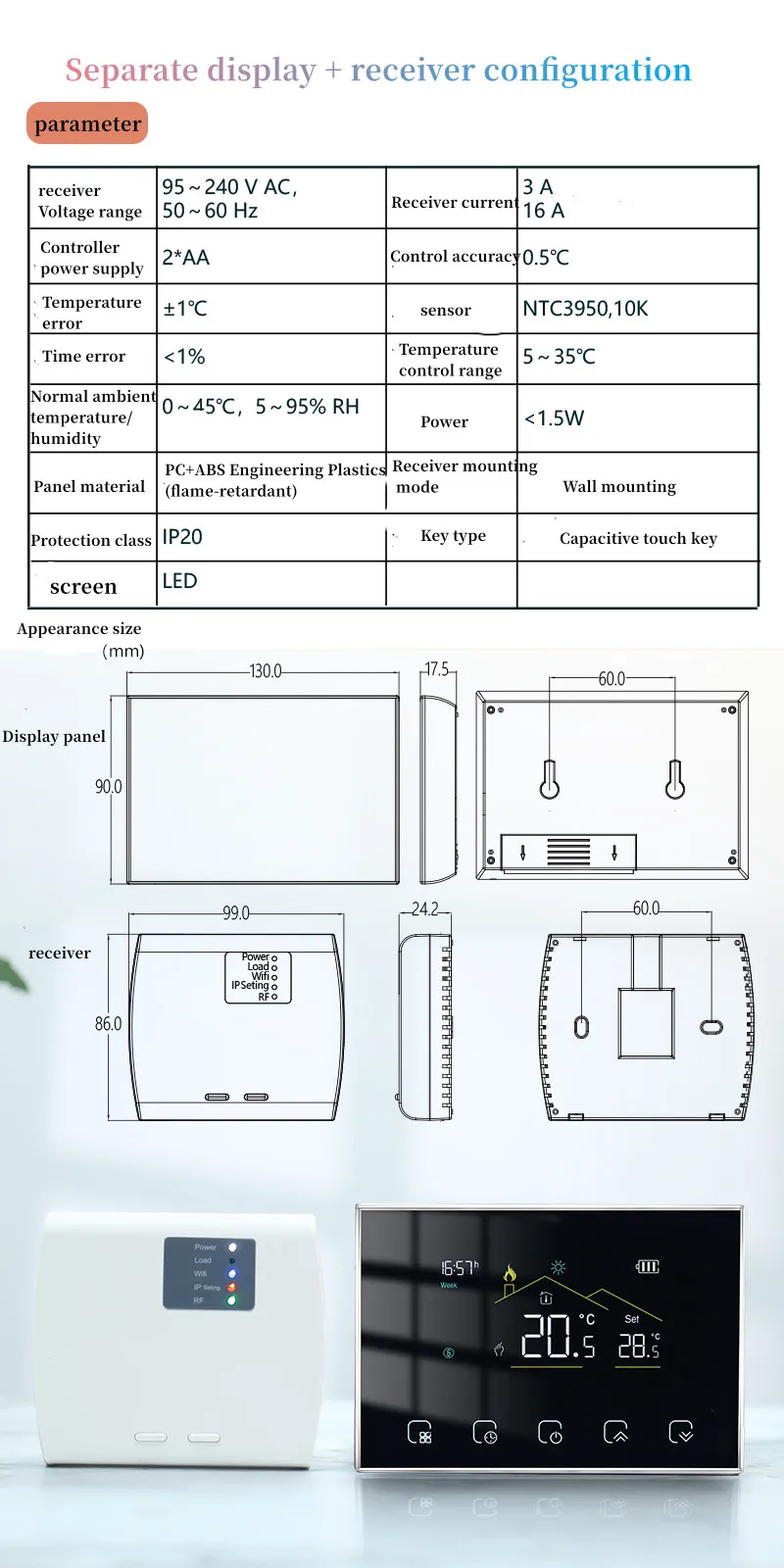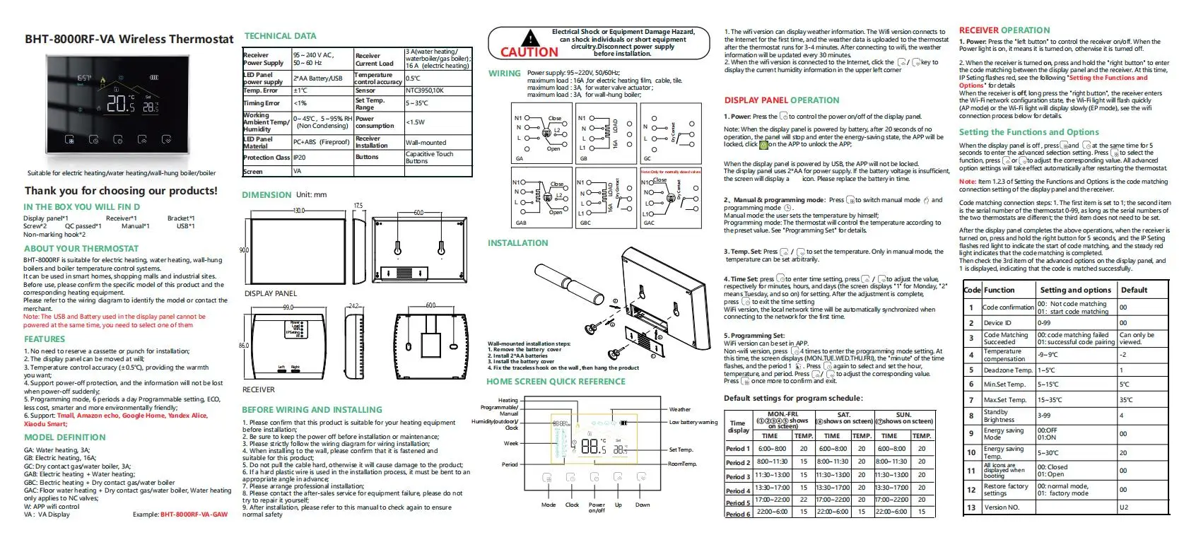 BHT-8000RF 전기 난방, 온수 난방, 벽걸이 형 용광로 및 보일러 온도 제어 시스템에 적합합니다.