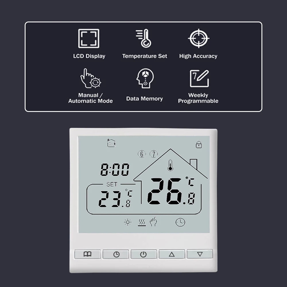 【스마트 온도 조절기 스위치 및 온도 컨트롤러】-지능형 온도 조절기는 스위치와 온도 컨트롤러 역할을합니다. 원하는 온도 설정에 따라 난방 시스템을 켜거나 끌 수있어 최적의 편안함과 에너지 효율을 보장합니다.