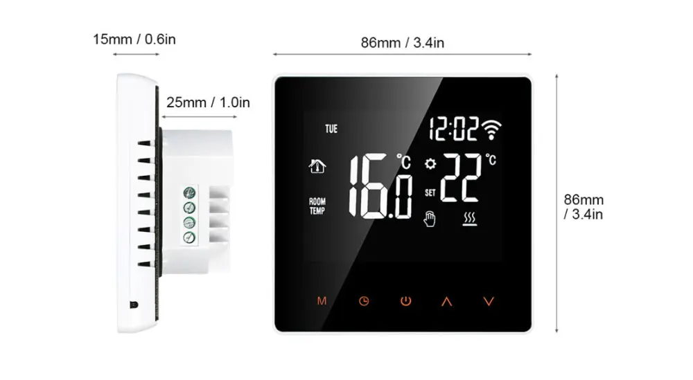 유리 거울 패널이있는 서모 스탯으로 인해 다른 환경에서 색상이 변경 될 수 있습니다. 벽에 설치하고 전원을 켜면 변경됩니다. 어두운 검정색으로.