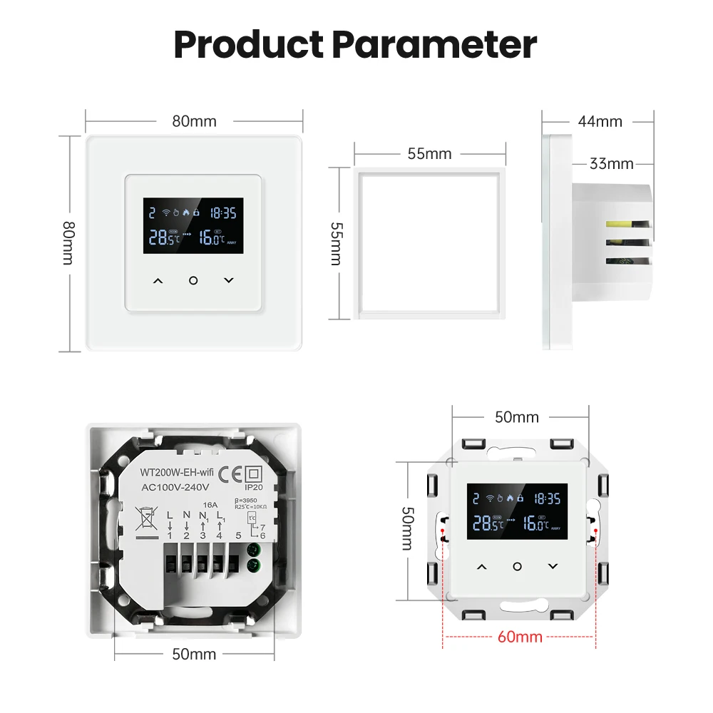 [독일 표준 분리 프레임 및 서모 스탯 바디 디자인]-전통적인 독일 제품군 스위치 및 서모 스탯 설치 스타일과 1:1 일치하며 교체가 편리합니다.