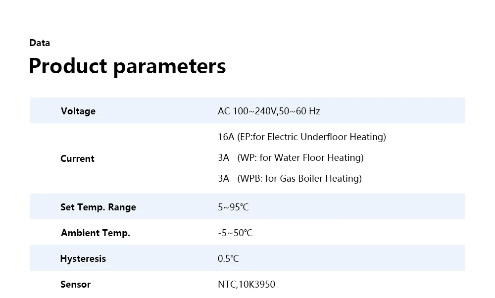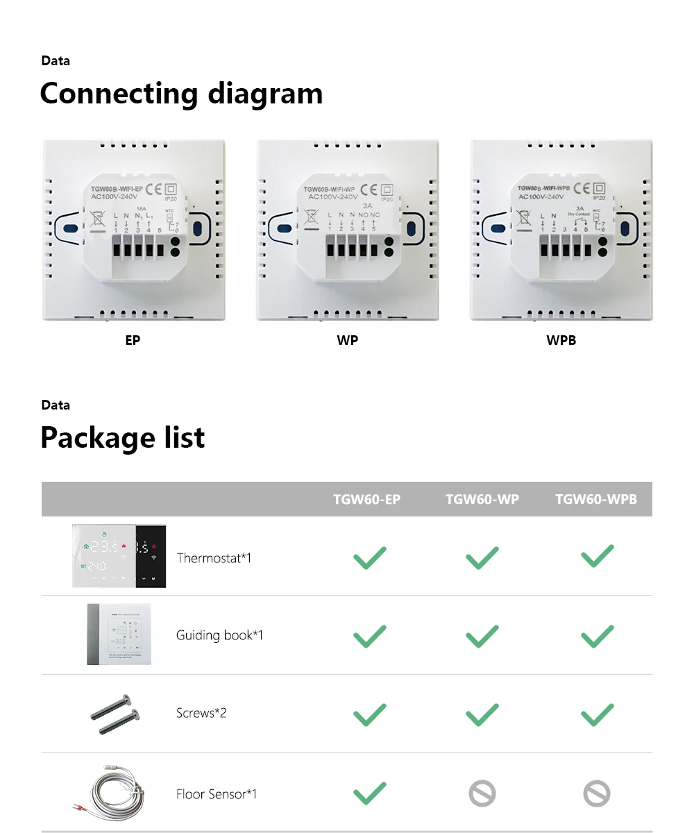 EP 모드: 전기 바닥 난방 용, 16A, 최대 3600 와트. 가열 케이블, 가열 필름을 제어하는 데 사용됩니다. 등.