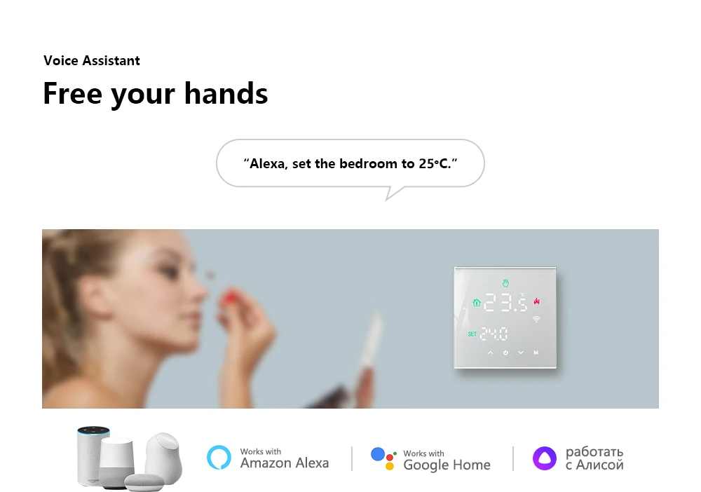 Google 조수 인 Amazon Alexa Yandex Alice와 협력하십시오 (예: Alexa, Beok 온도 조절기를 25 °C 로 설정)