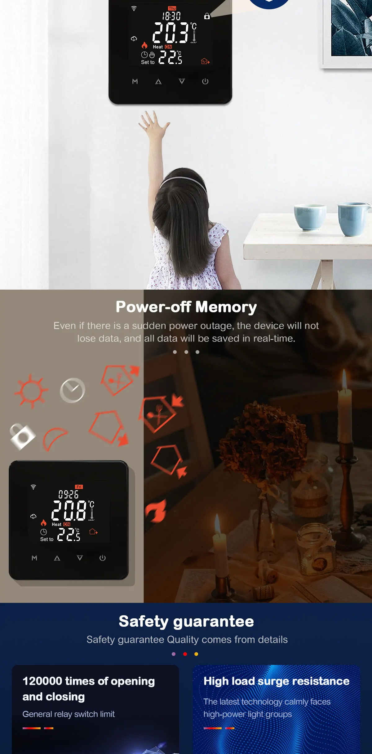 전기 난방, 온수 난방, 가스 보일러에 적용 가능. 집, 사무실, 쇼핑몰, 호텔 등에 적합합니다.