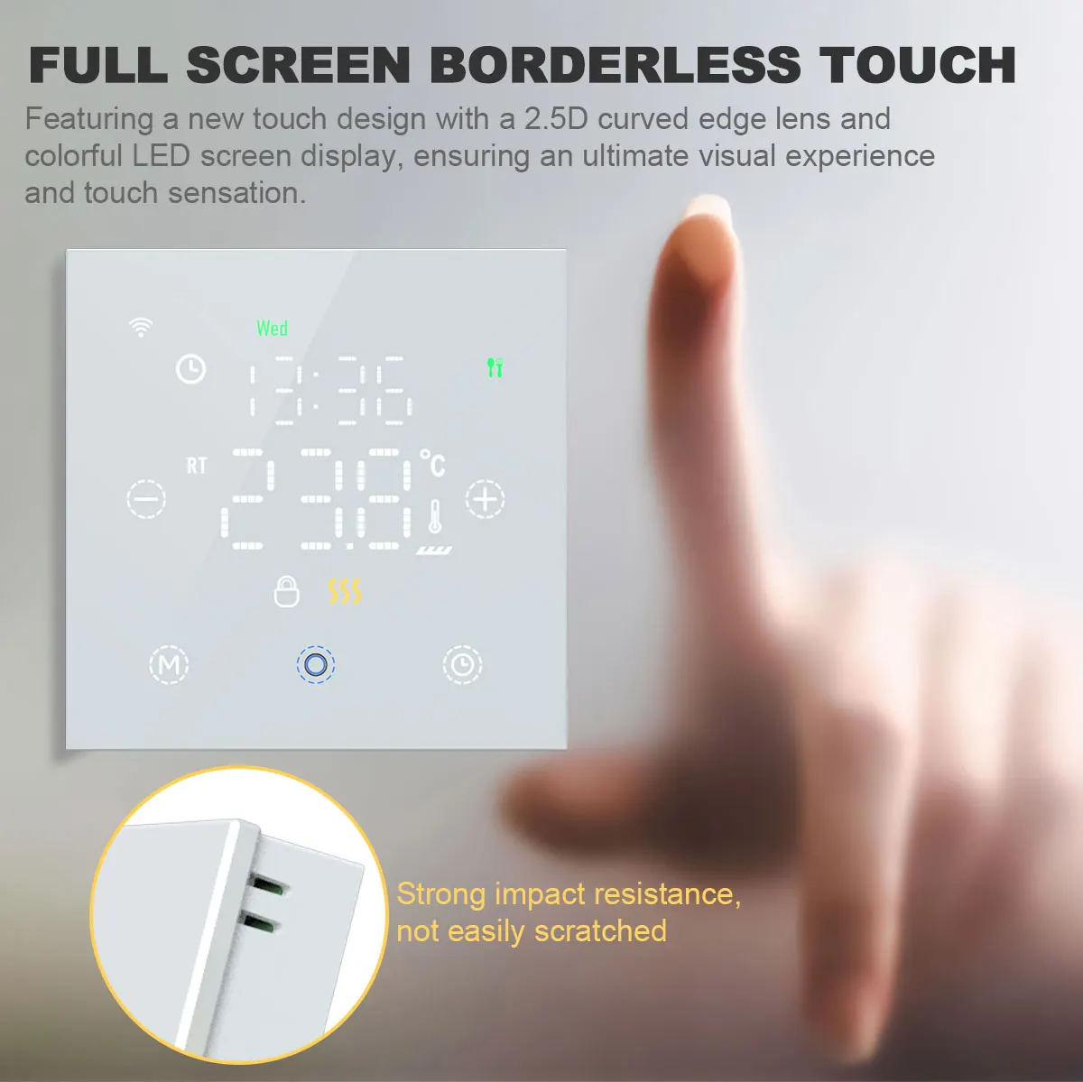 온도 조절기는 기본적으로 고정밀 온도 센서 칩이 장착 된 5 ~ 95 ℃ 범위입니다. 감지 디스플레이 정확도는 최대 0.1 ℃이며 버튼 정확도는 0.5 ℃에 이르며 실내 온도를 정밀하게 제어하여 en을 낭비하지 않도록 합니다.
