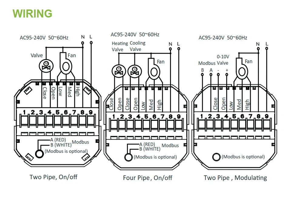 WiFi 중앙 에어컨 온도 조절기 온도 컨트롤러 2 파이프 4 파이프 3 속도 팬 코일 장치 알렉사 구글 홈 작동