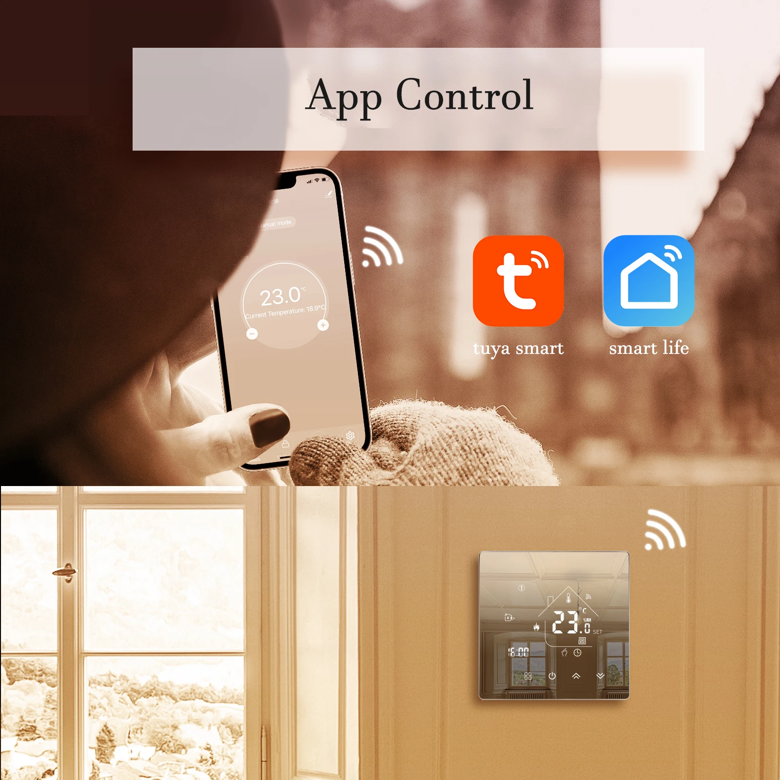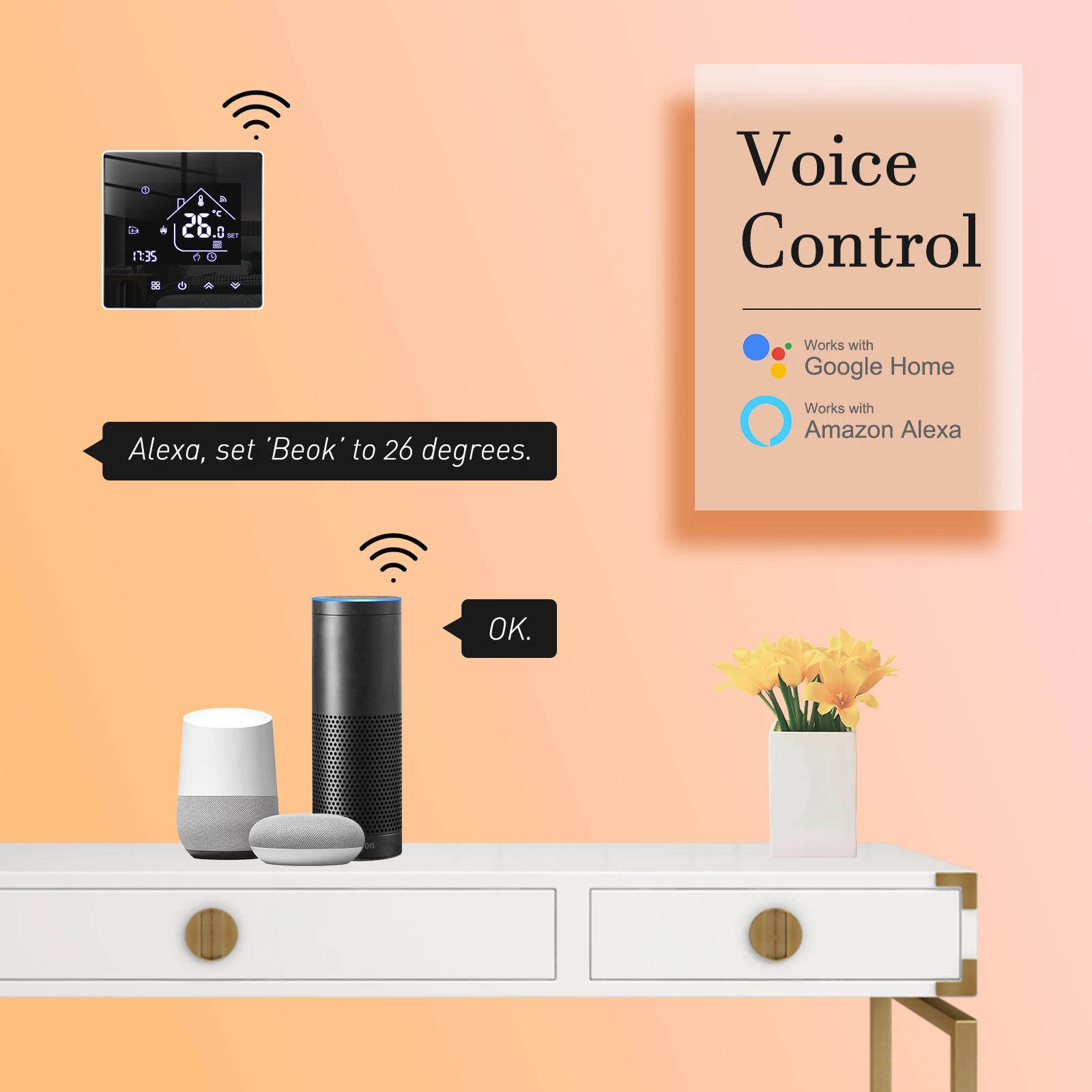 2.No-WIFI thermostat don"t have wifi function, they can"t work with Smart Phone or Any Voice Assistant (they don"t have wifi function and voice control function)