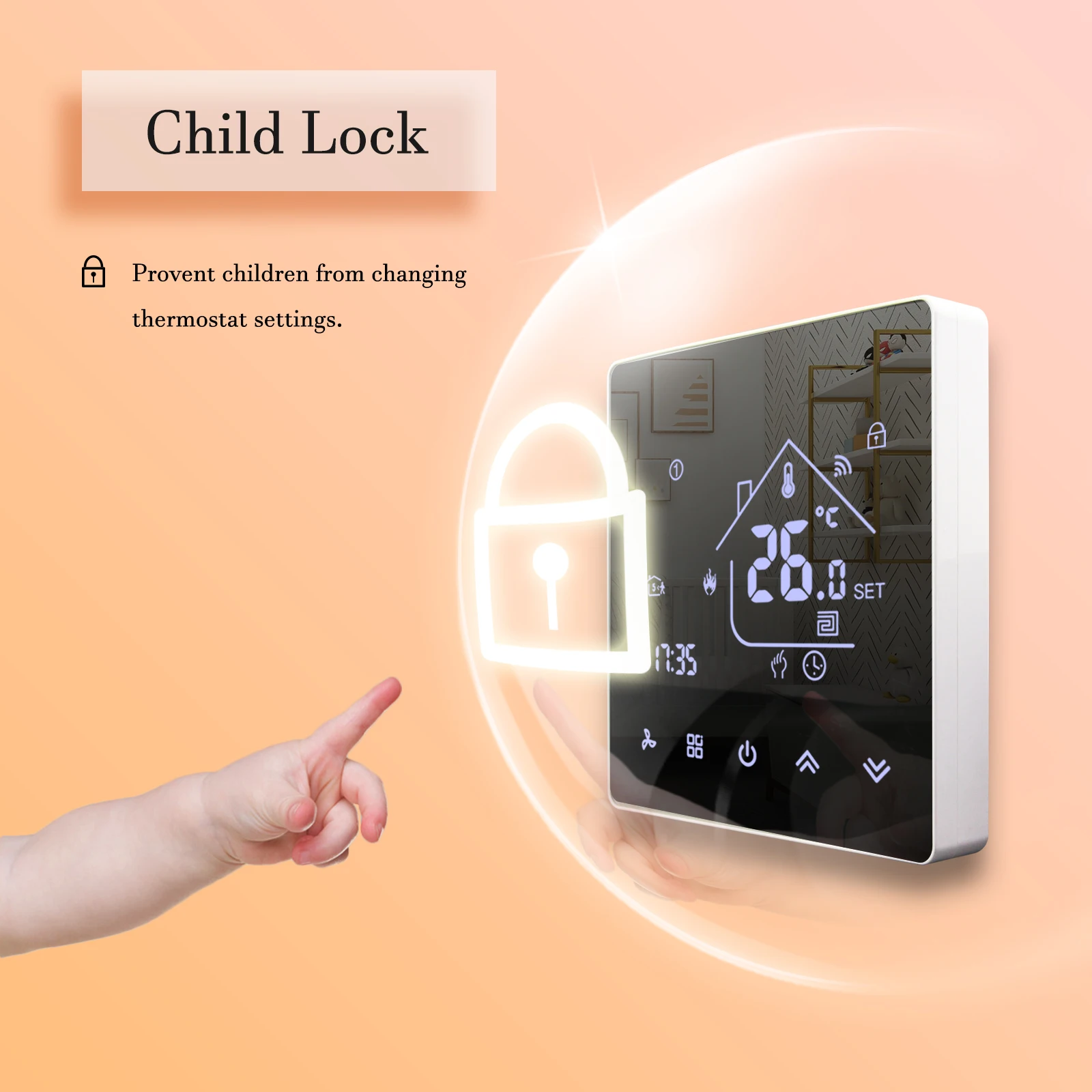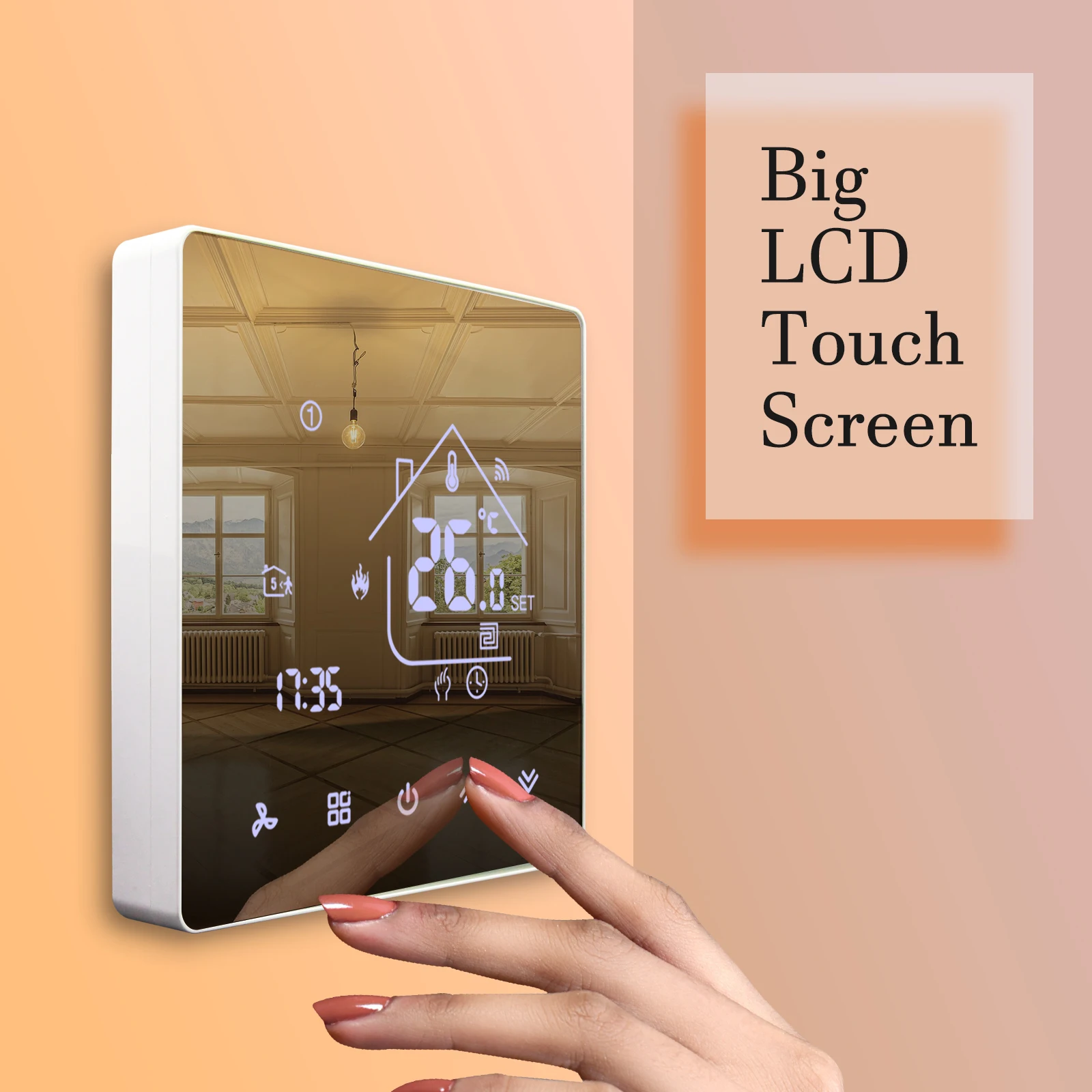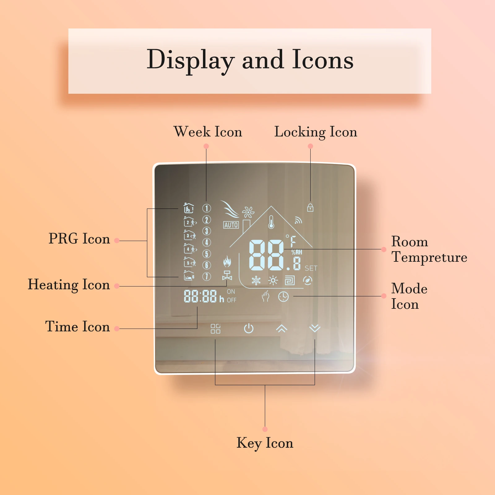 7. Supports 7 days weekly operation modes and different temperature setting with 6 time mode daily.