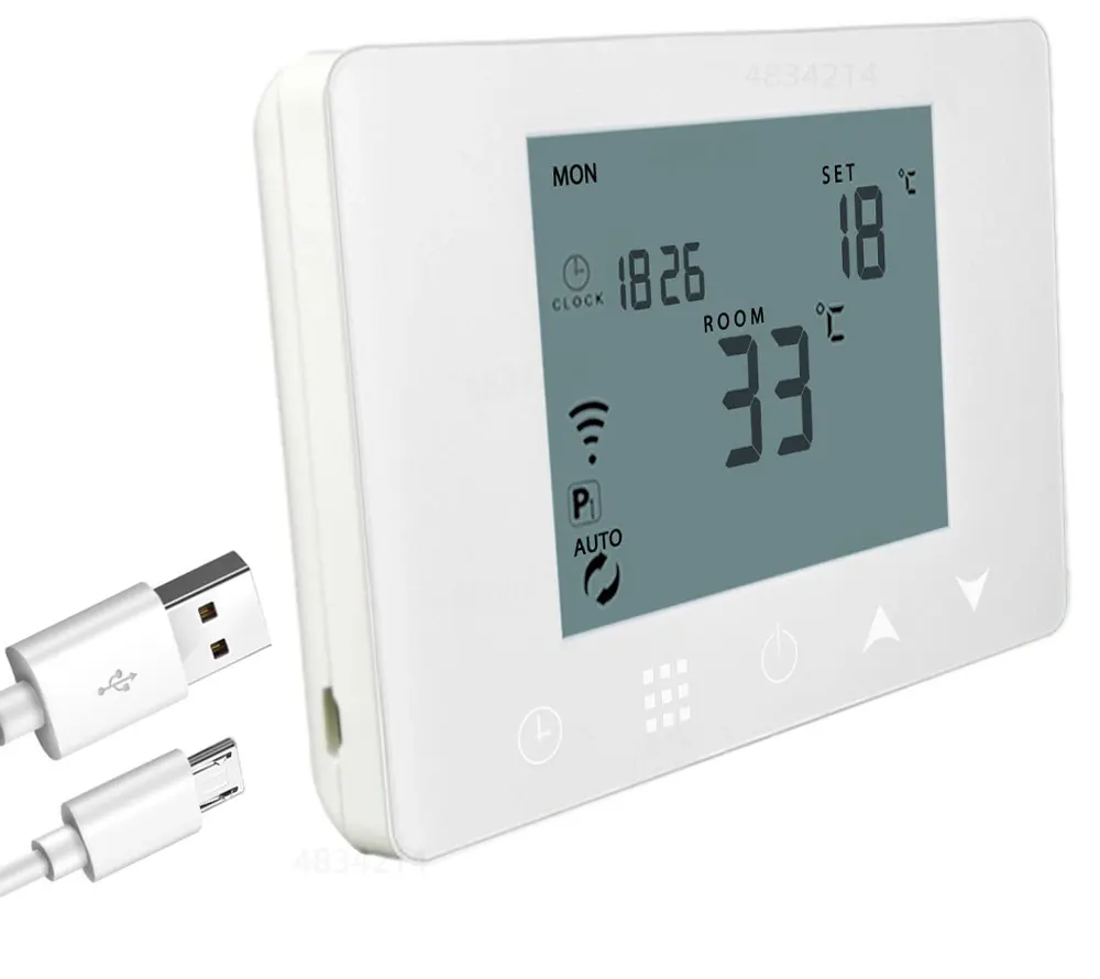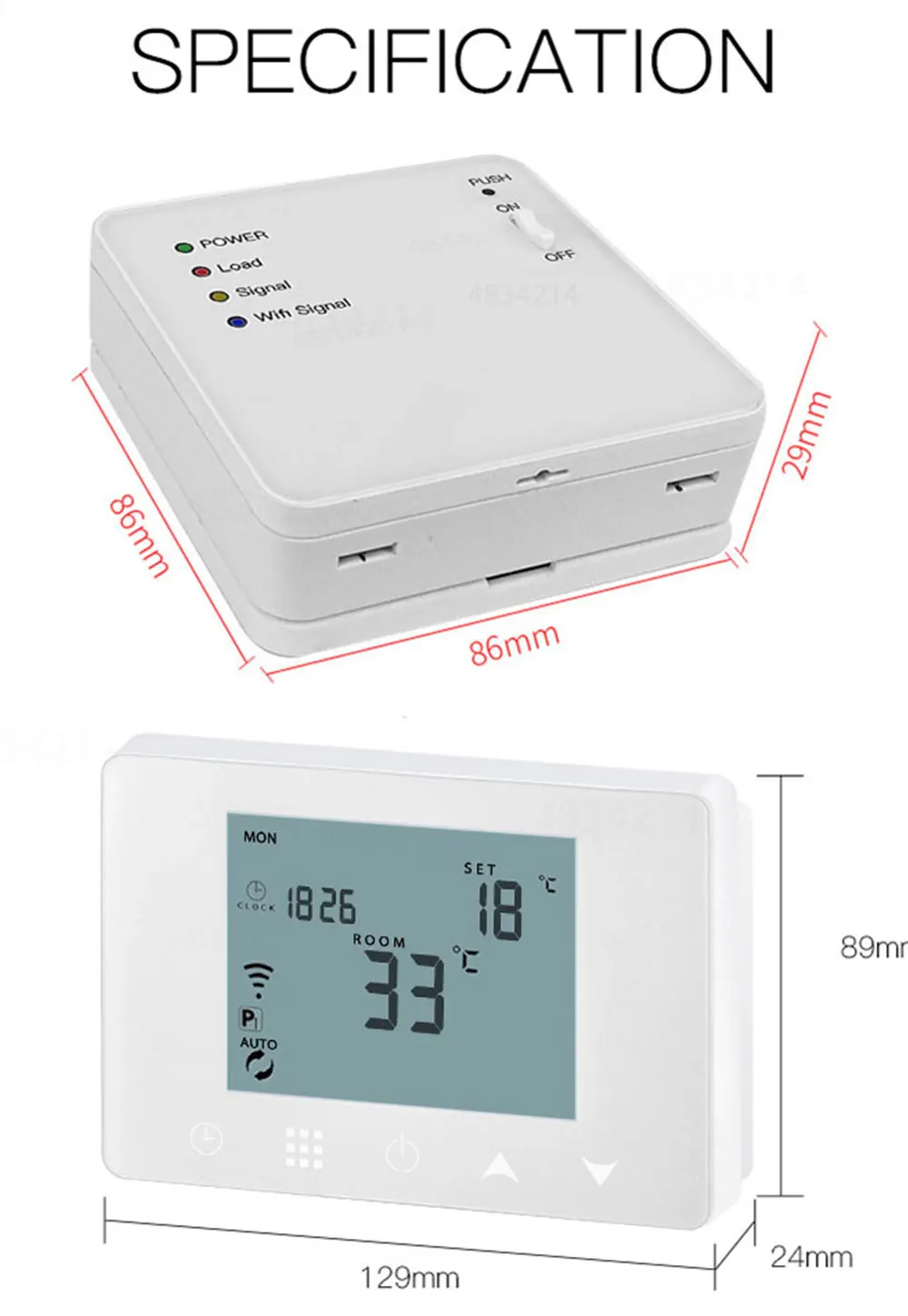 (참고: 컨트롤러는 USB 전원 또는 배터리 전원입니다. 서모 스탯에는 두 가지 유형이 있습니다. 하나는 가스 보일러와 바닥 난방 시스템 용이고 다른 하나는 바닥 전기 난방 시스템 용입니다.)