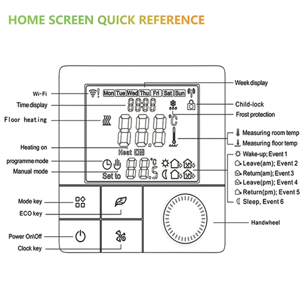 (1).Qiumi WiFi heating smart thermostat supports full auto programs or manual set up. You can either use manual control or connect to WiFi and make your heating schedules by Smartphone App, easily adjusting or controlling the temperature of your house.(2). Only used under the 2.4Ghz Wifi, Not 5Ghz.