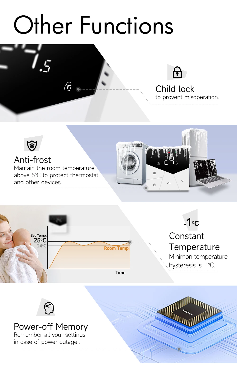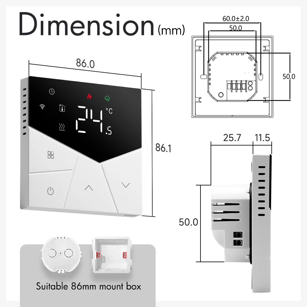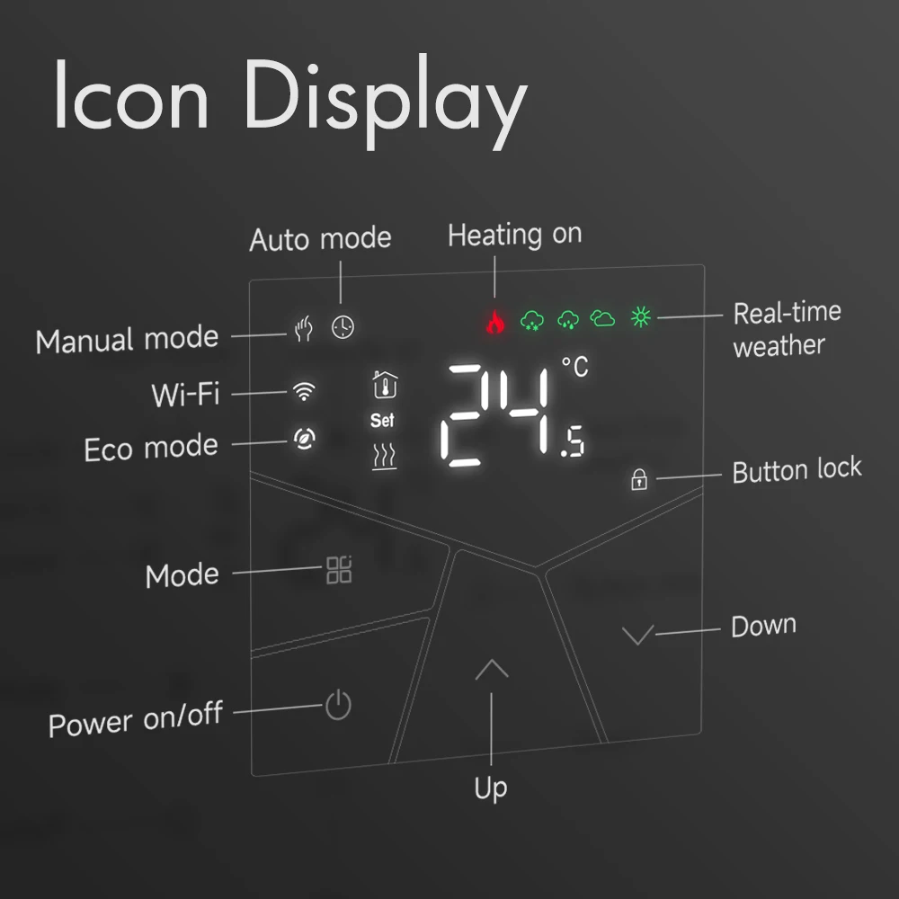 TGP55-WIFI 난방 온도 조절기는 스마트 폰 제어가 가능한 WIFI 터치 스크린 온도 조절기입니다.