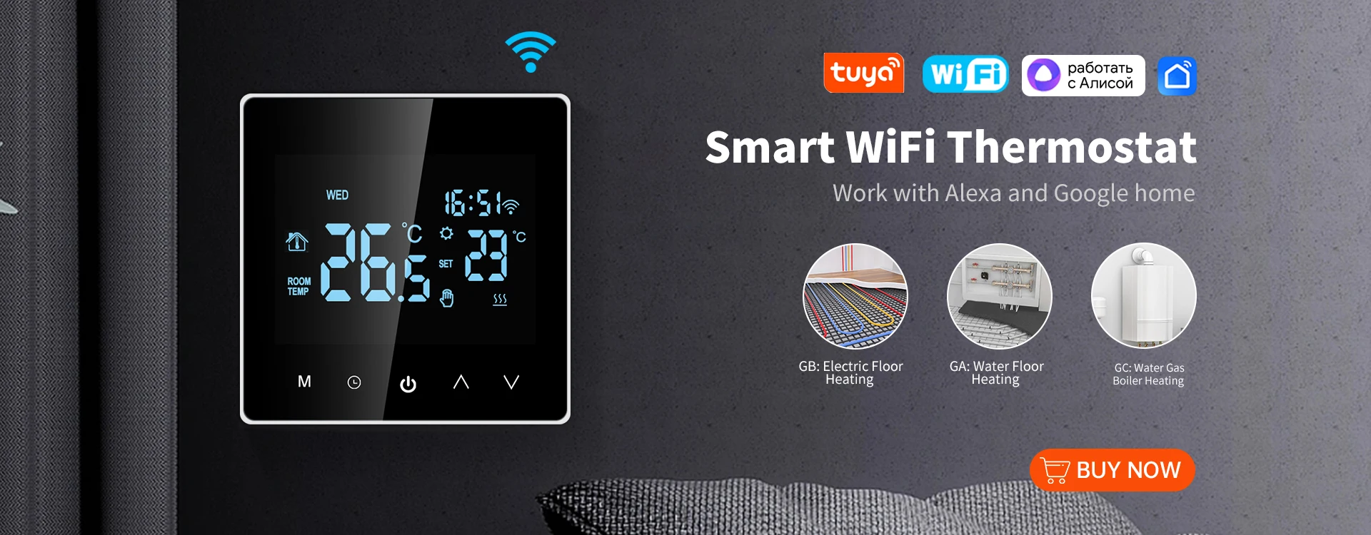 스마트 와이파이 온도 조절기는 아마존 알렉사, 구글 홈, Yandex 앨리스와 완벽하게 호환됩니다. Yandex Alice,Alexa 또는 Google Home Assistant에 음성 명령을 내리면 이동 중에도 기기를 제어 할 수 있습니다.