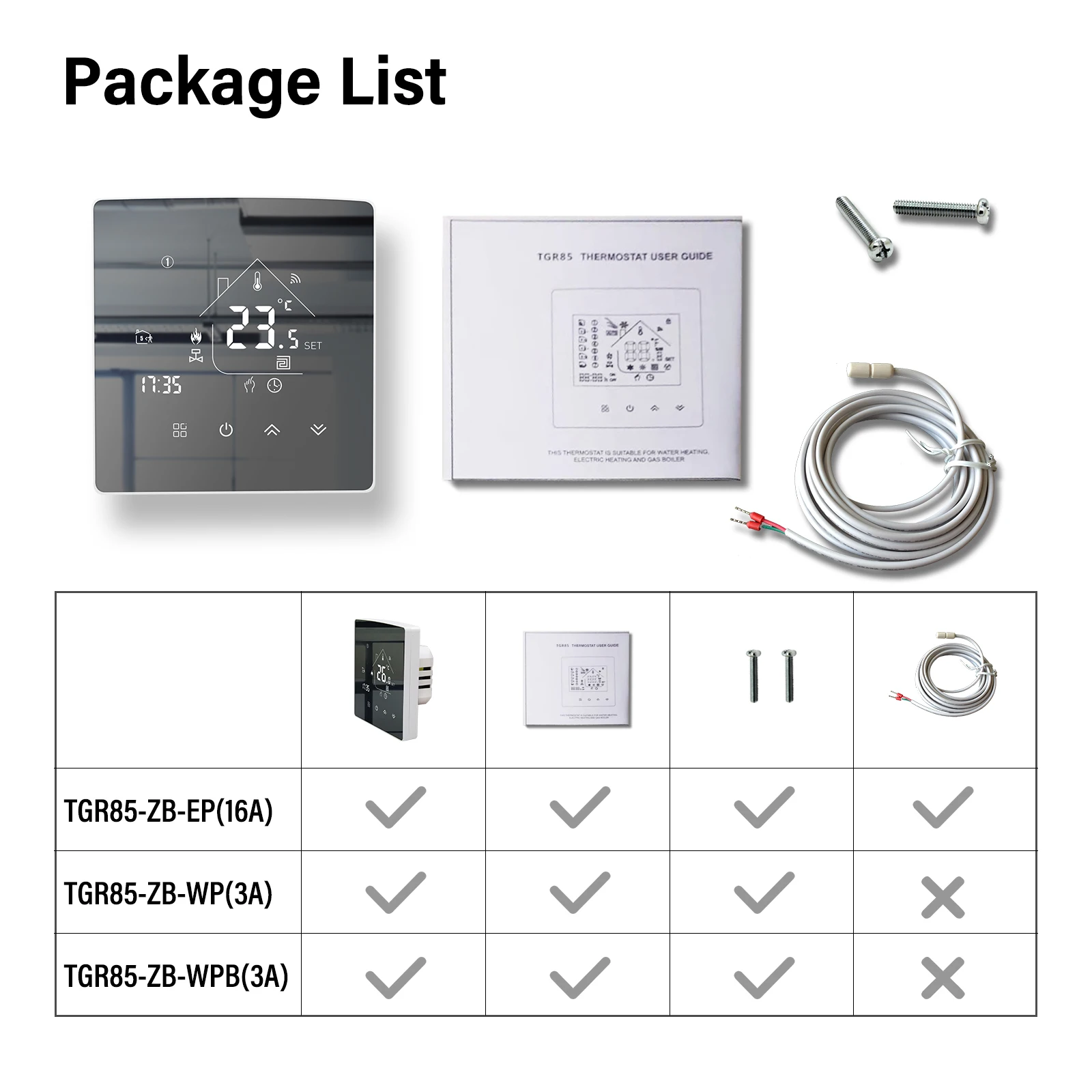 전류 부하: ≤ 16A (전기 가열),≤ 3A (물 가열)