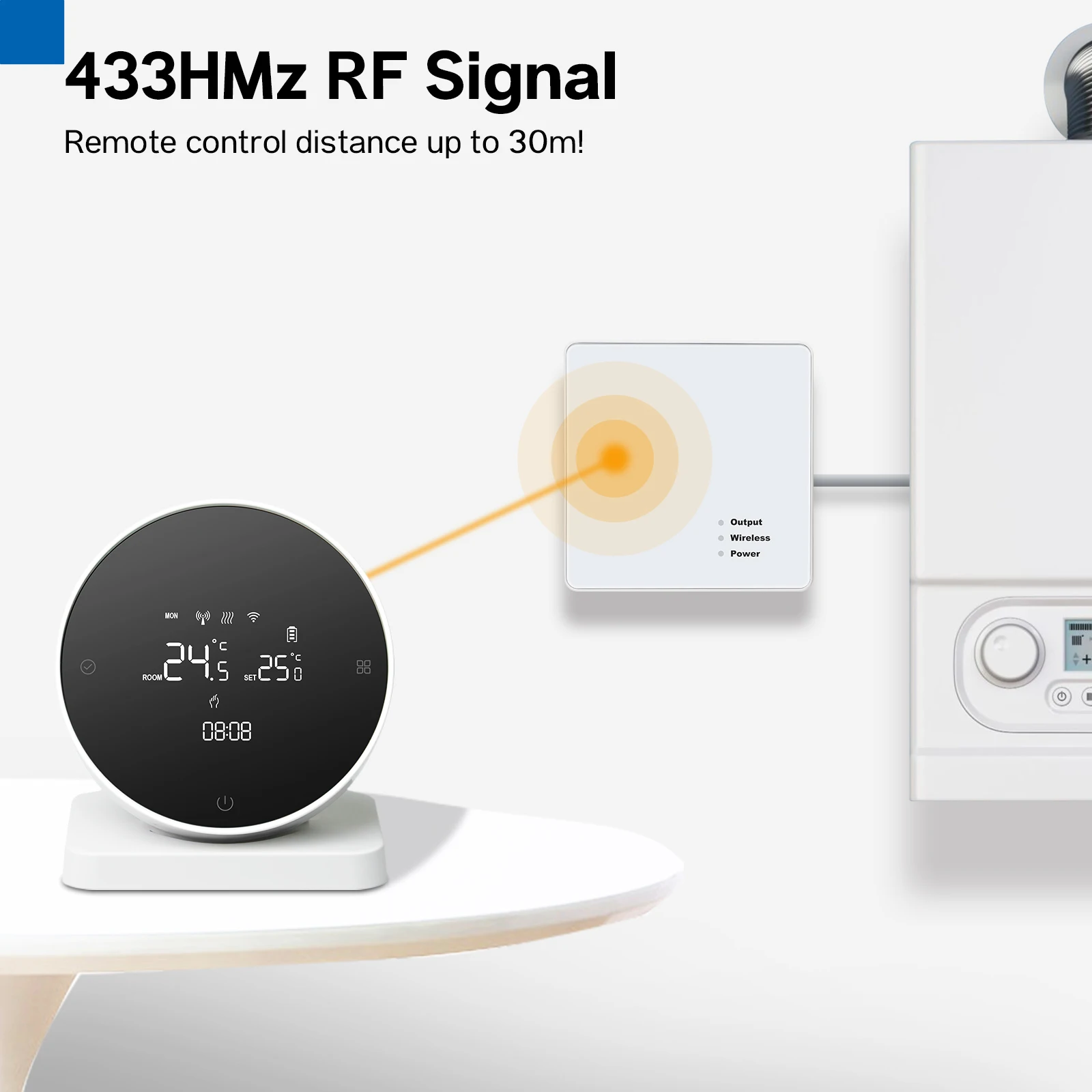 가스 보일러 배터리 제어용 RF 무선 온도 조절기 Google Alexa Alice와 프로그래밍 가능 WiFi 온도 조절기 작동