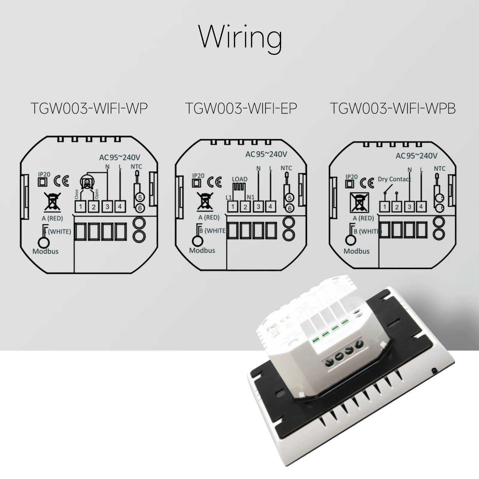 TGW003-WIFI-WP is uesd to control pump, valve or electric thermal actuator .etc TGW003-WIFI-WPB is uesd to control gas boiler, elcetric boiler or heat pump which are connected via "Dry Connect" !