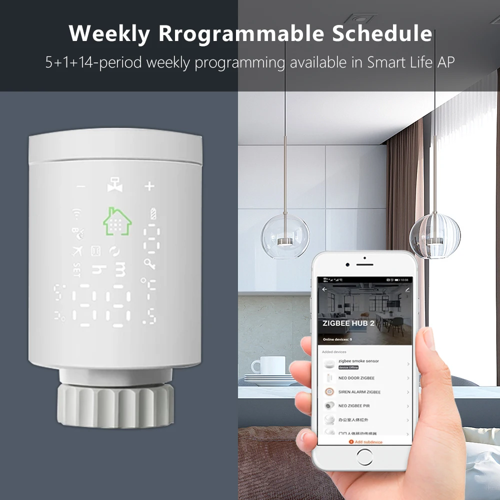 투야 지그비 3.0 TRV 온도 조절기 스마트 라디에이터 액추에이터 밸브 열 헤드 프로그래밍 가능 온도 컨트롤러 알렉사 구글 홈