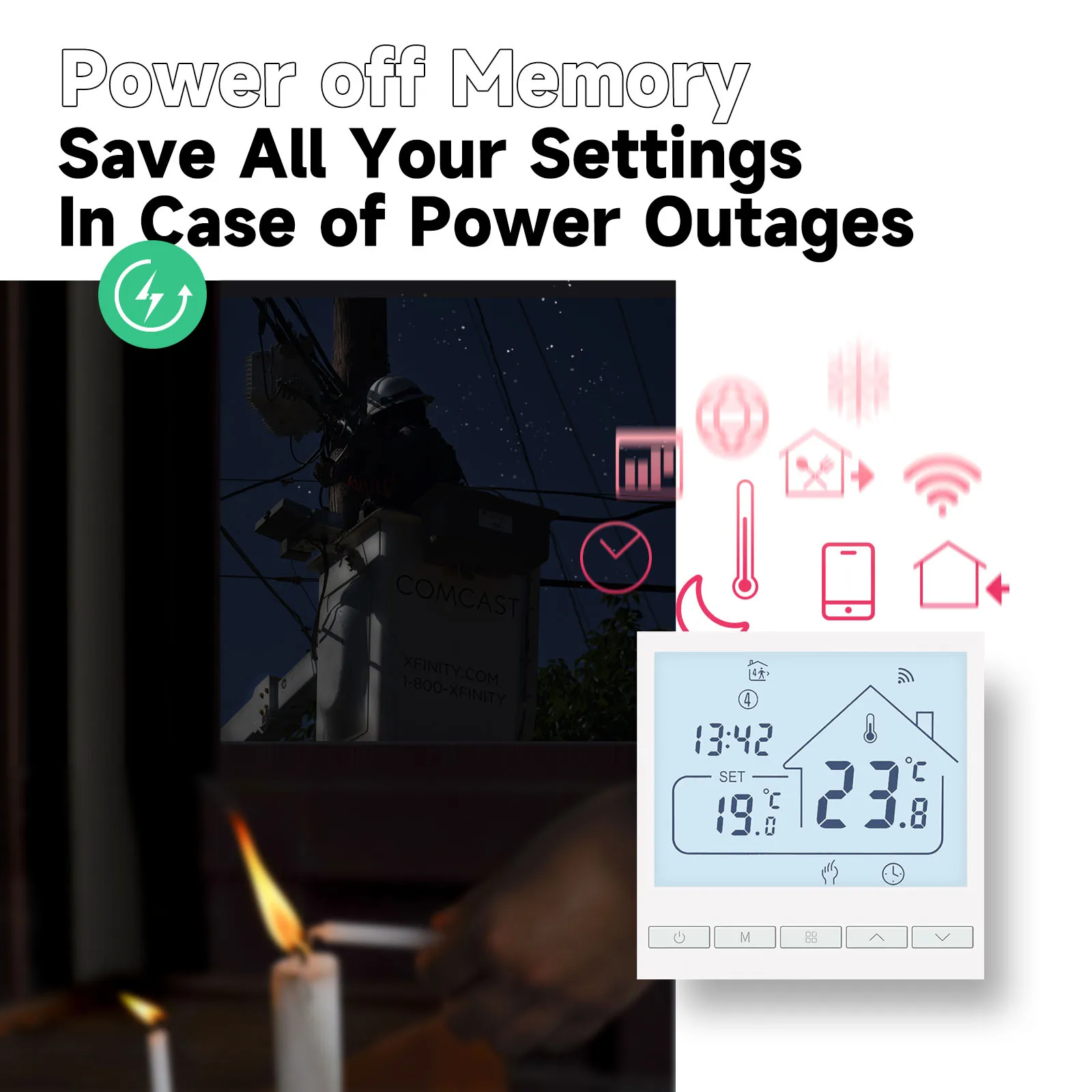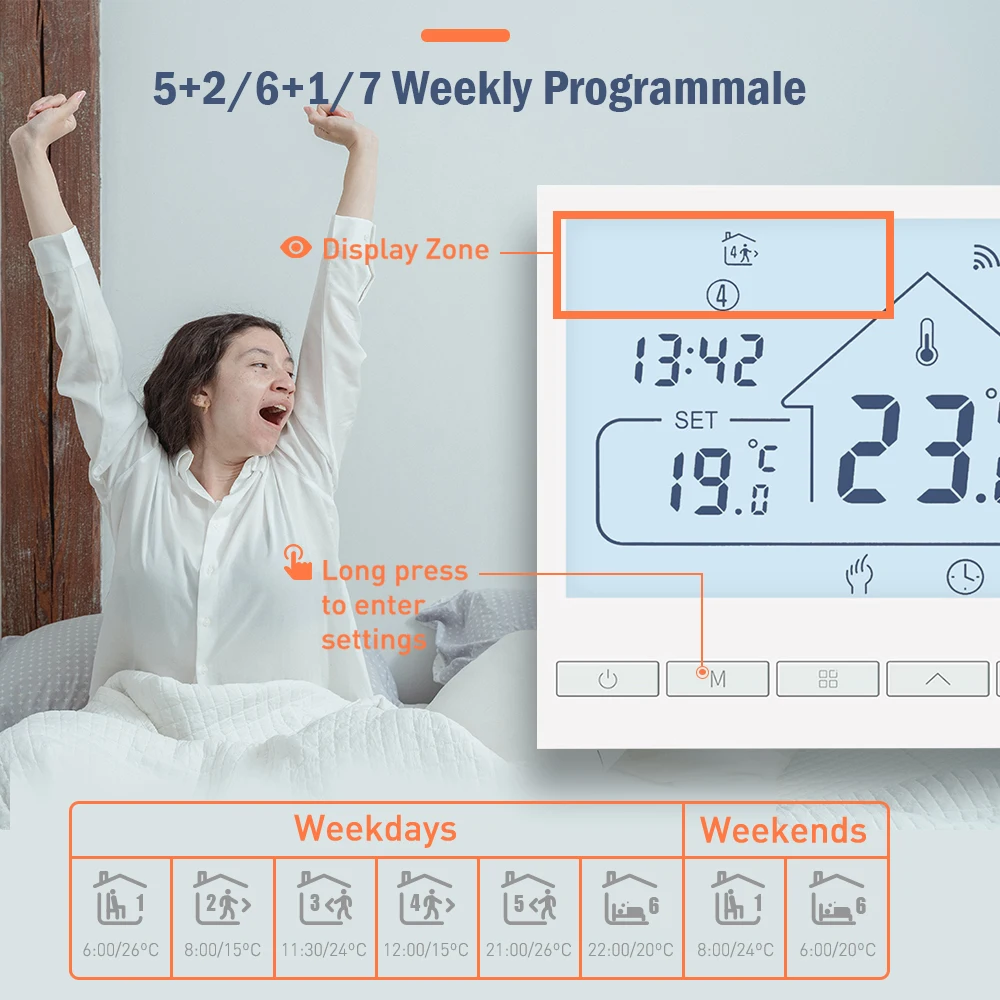 주변 온도와 설정 온도를 비교하여 가스 보일러의 작동 상태를 제어하여 편안함을 향상시키고 에너지 절약을 달성합니다.