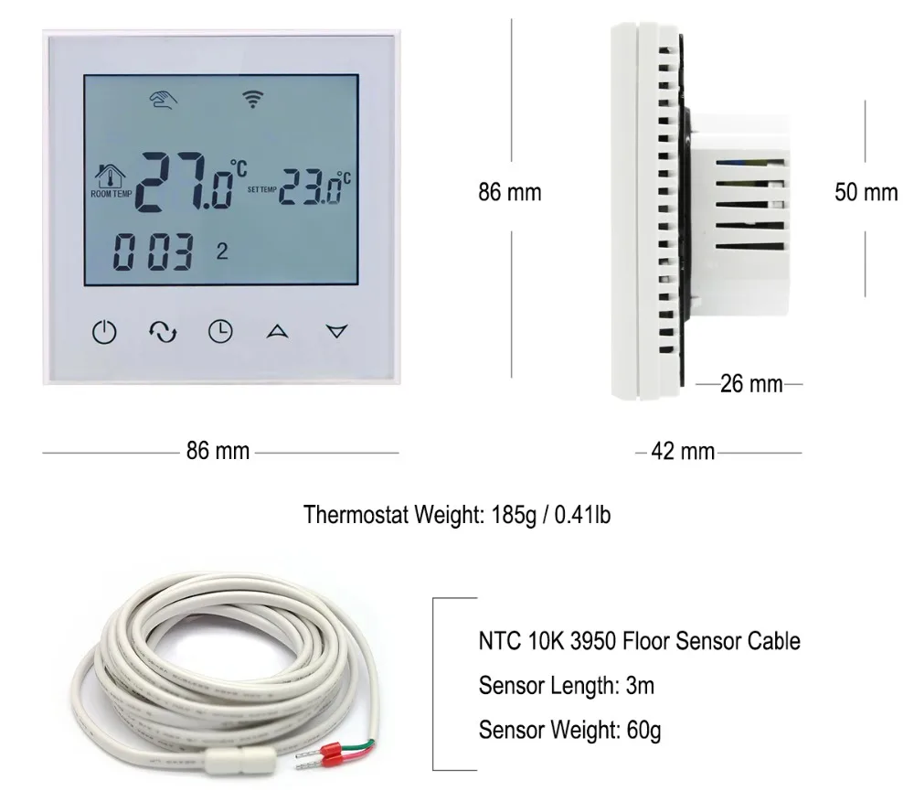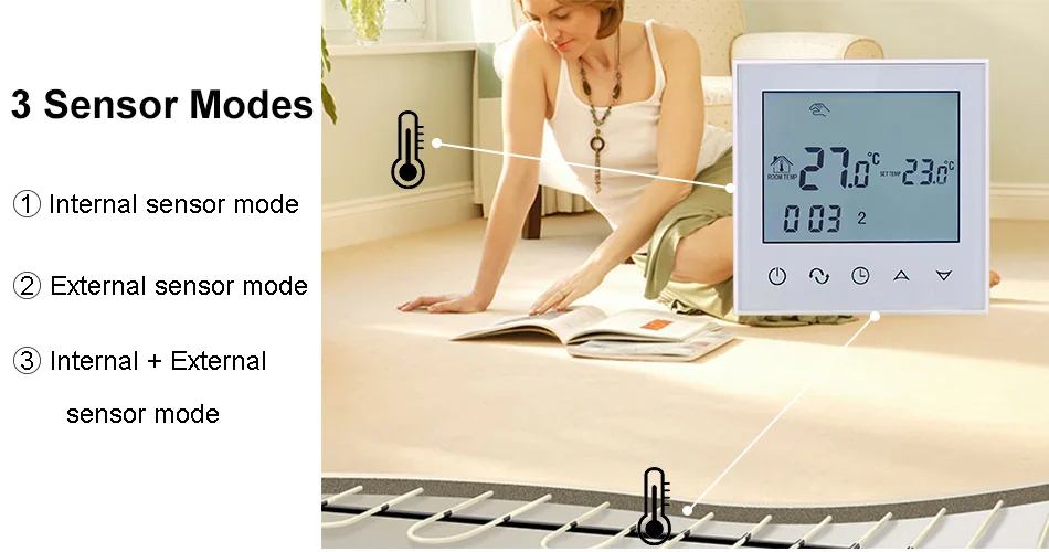 3. Electric Floor Heating Thermostat (EP) include External sensor,Water Floor Heating Thermostat (WP) doesn"t include External sensor !