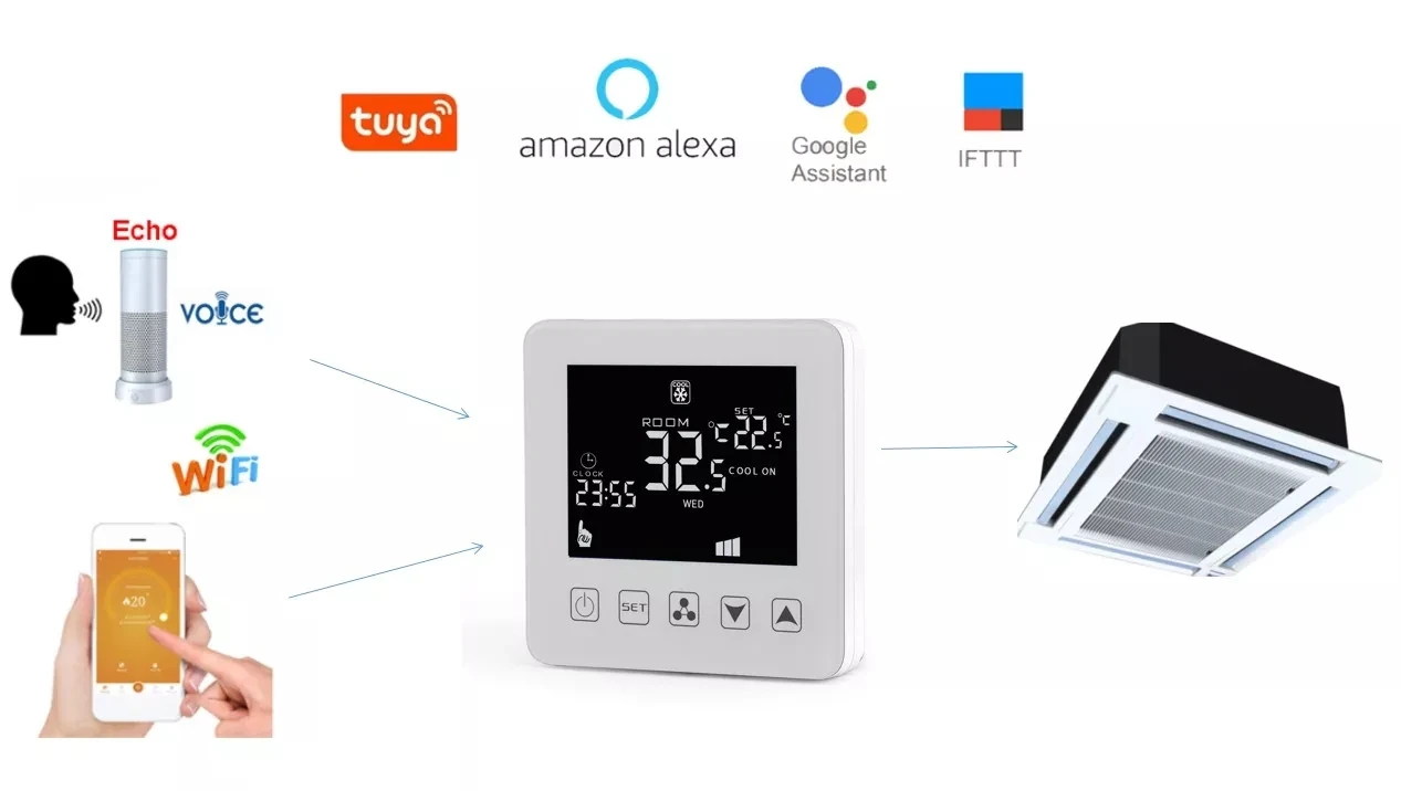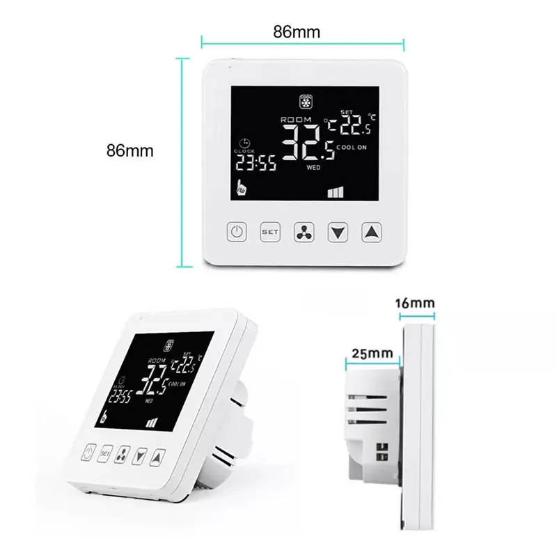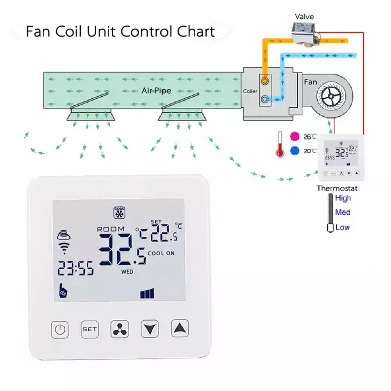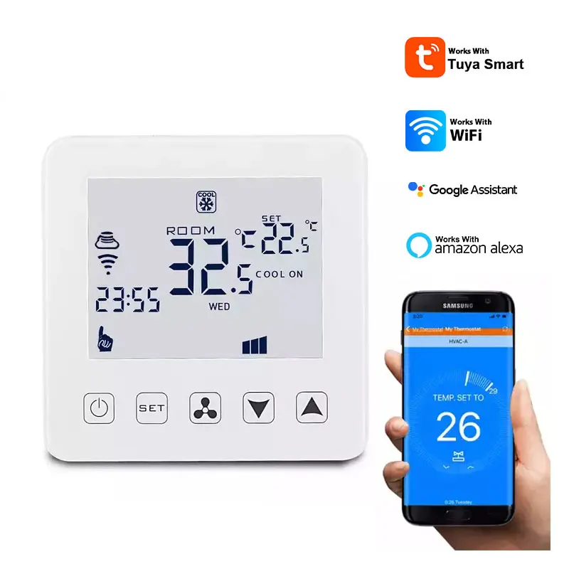Wi-Fi Tuya 온도 난방 온도 조절기 컨트롤러 WiFi 2 케이블 팬 코인 유닛 중앙 에어 콘 Tuya 공식 매장 스마트 홈