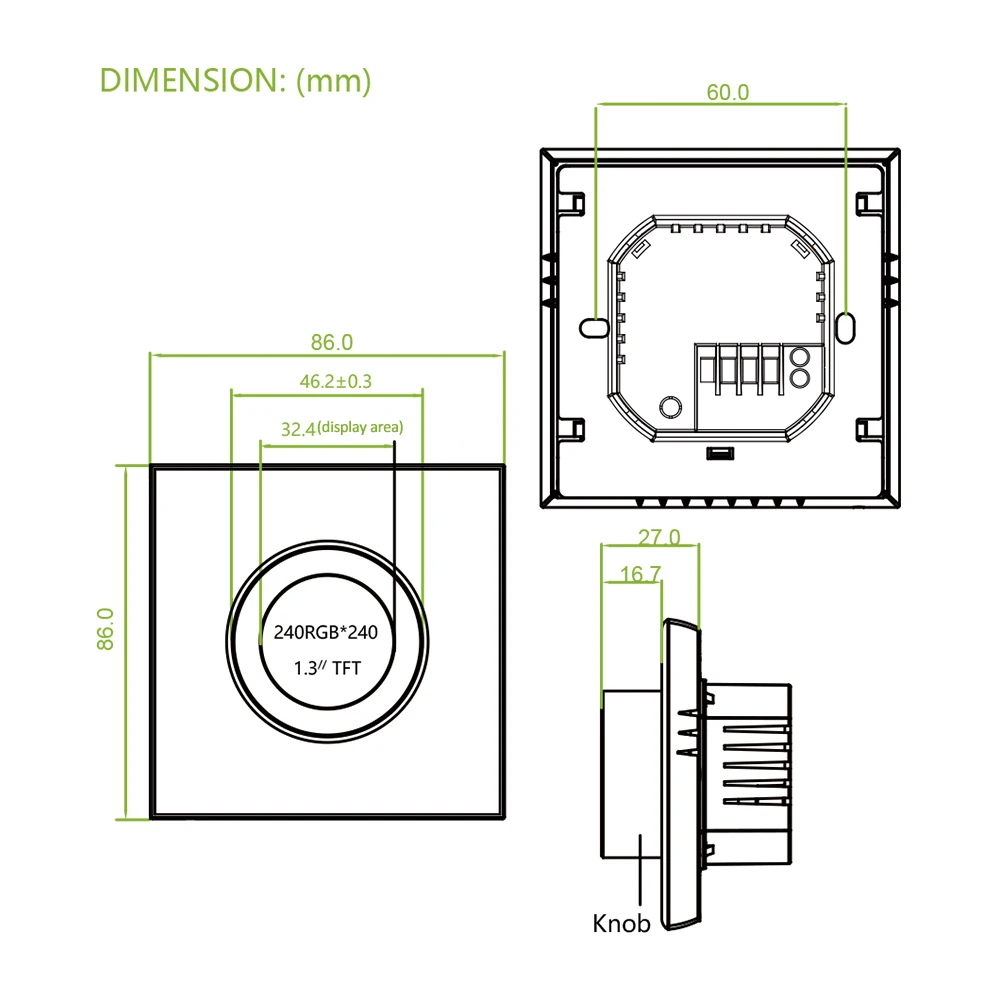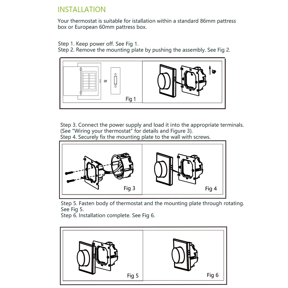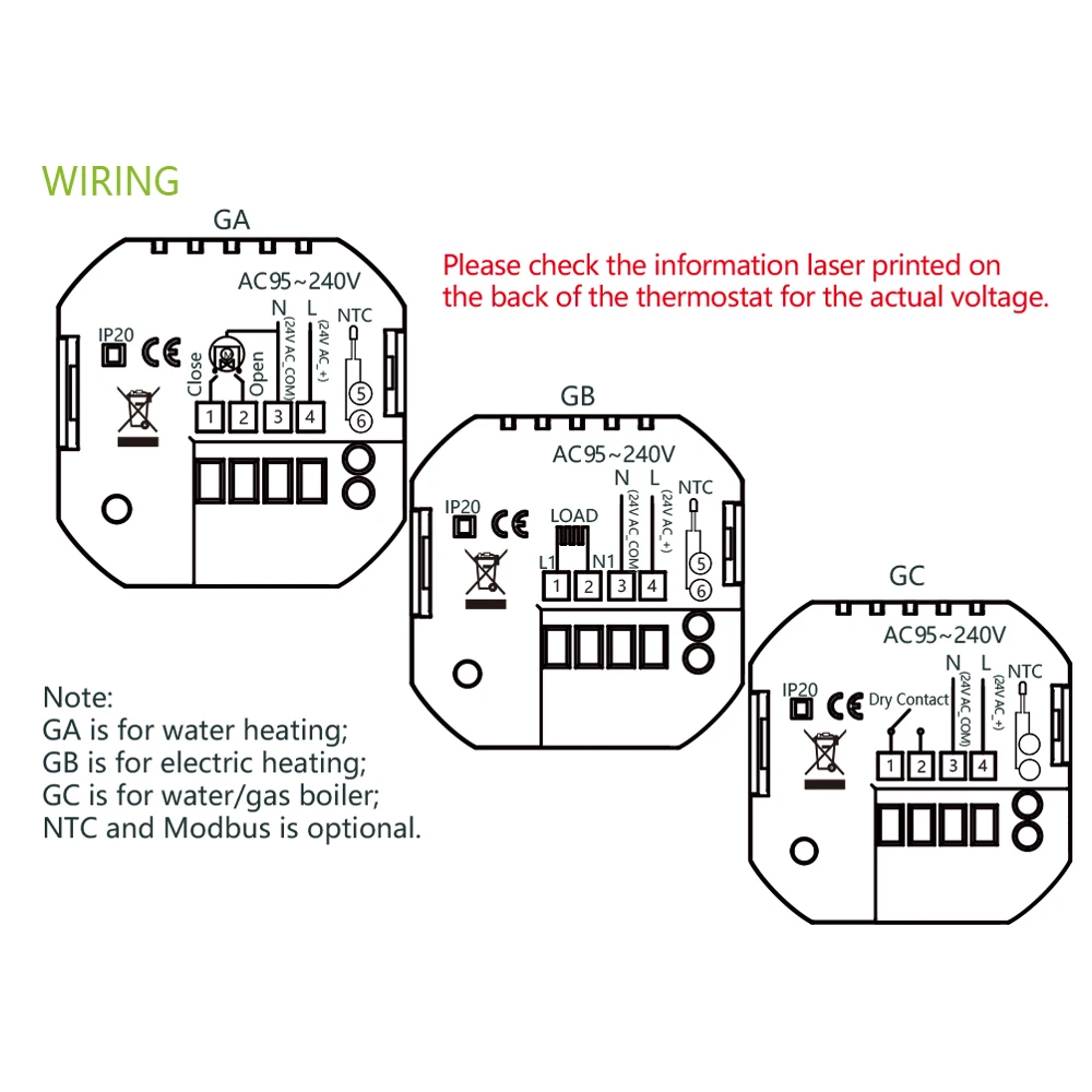 전원 공급 장치: 95-240VAC, 50-60Hz 또는 24V DC/AC, 50-60Hz (실제 전압은 서모 스탯 뒷면에 인쇄 된 정보 레이저를 확인하십시오)