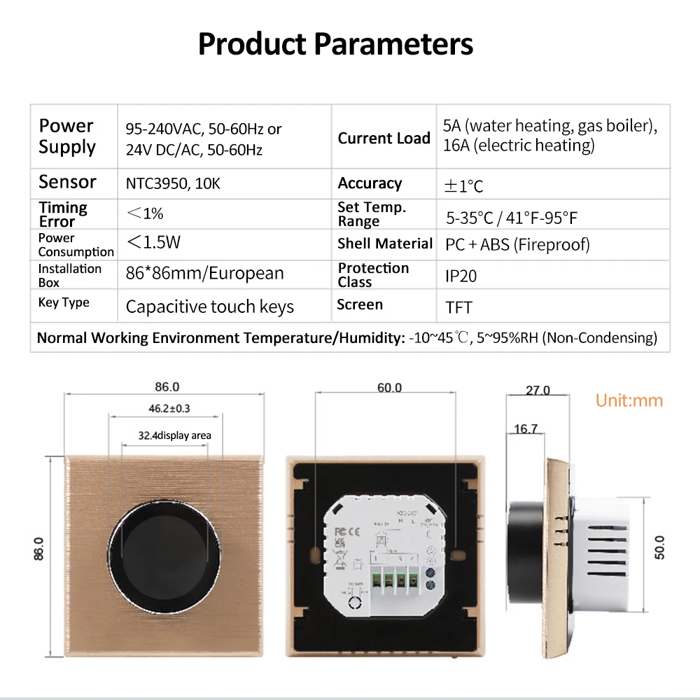 전류 부하: 5A (온수 가열, 가스 보일러), 16A (전기 가열)