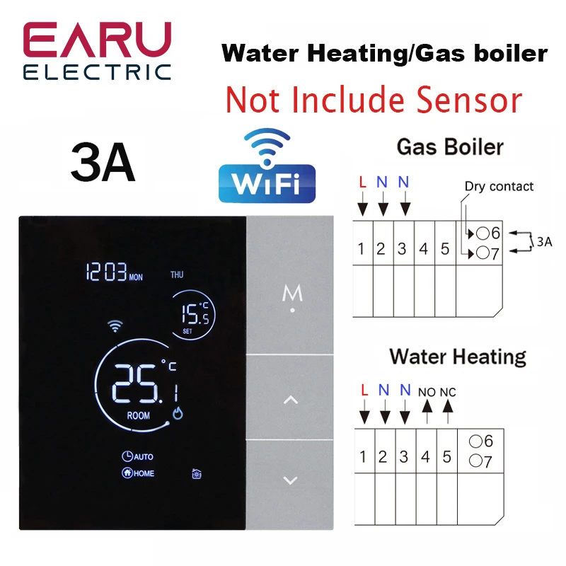 TUYA 와이파이 온도조절기 온도 컨트롤러 물 전기 바닥 난방 TRV AC100V-240V 3A 16A 디지털 LCD 디스플레