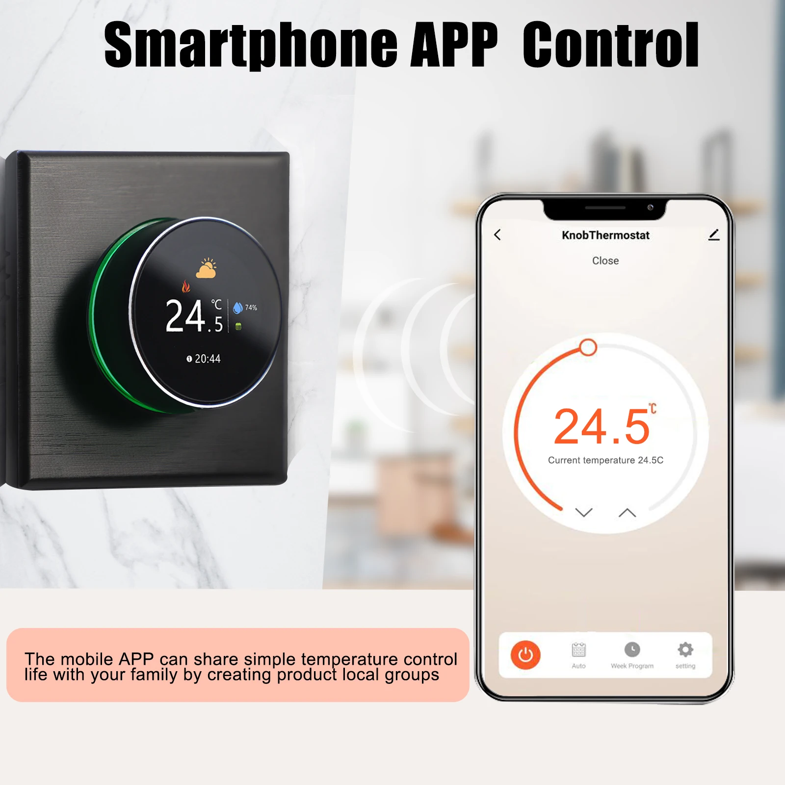 【스마트 폰 APP 원격 제어】 스마트 폰 APP(Smartlife) 를 통해 고급 편안함을 얻기 위해 집 온도를 원격으로 제어하며 집에 상관없이 언제 어디서나 온도를 원격으로 조정하거나 온도 조절기를 잠글 수 있습니다. 사무실에서 또는 집으로가는 길에.