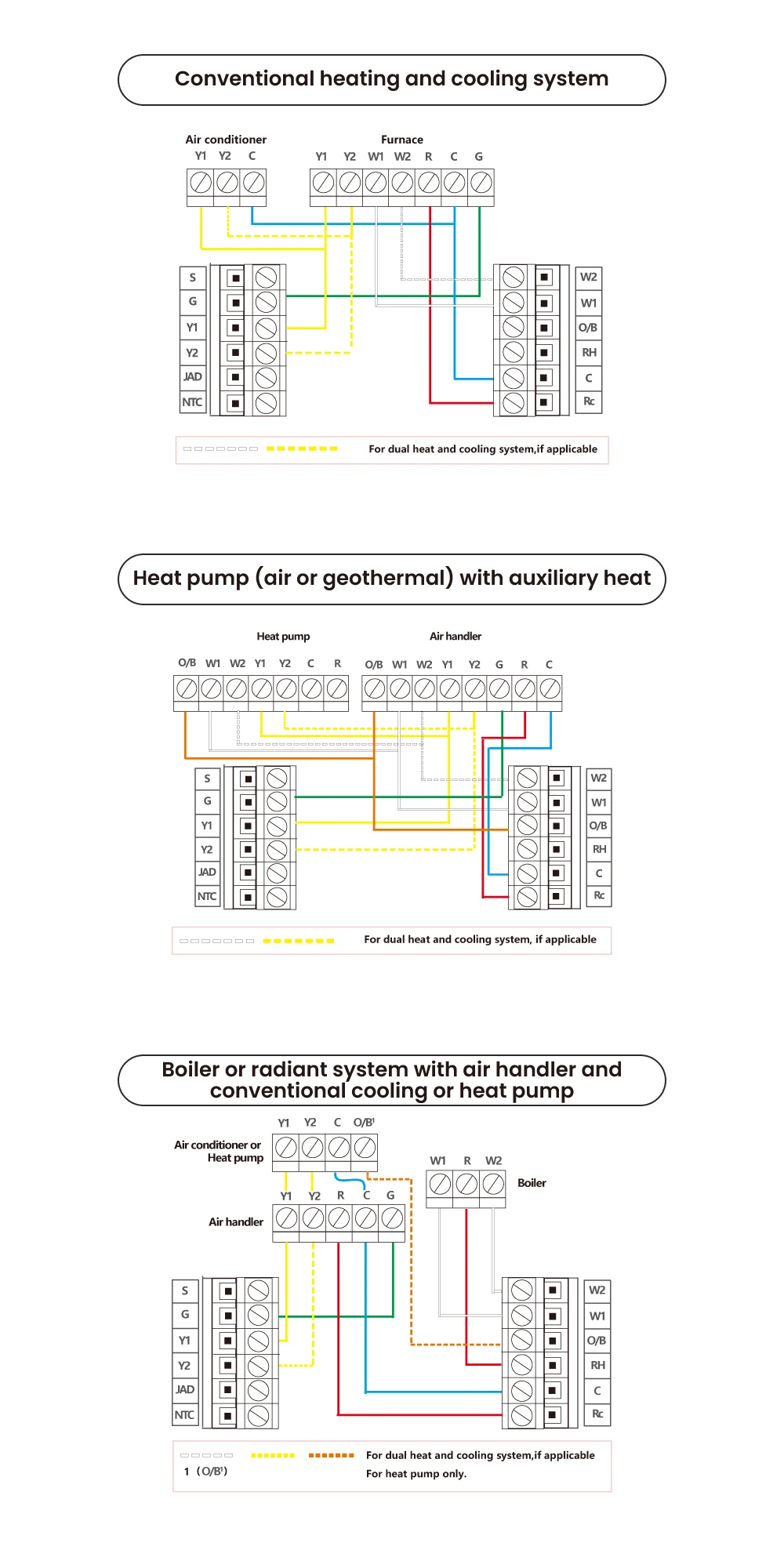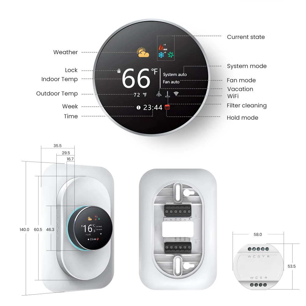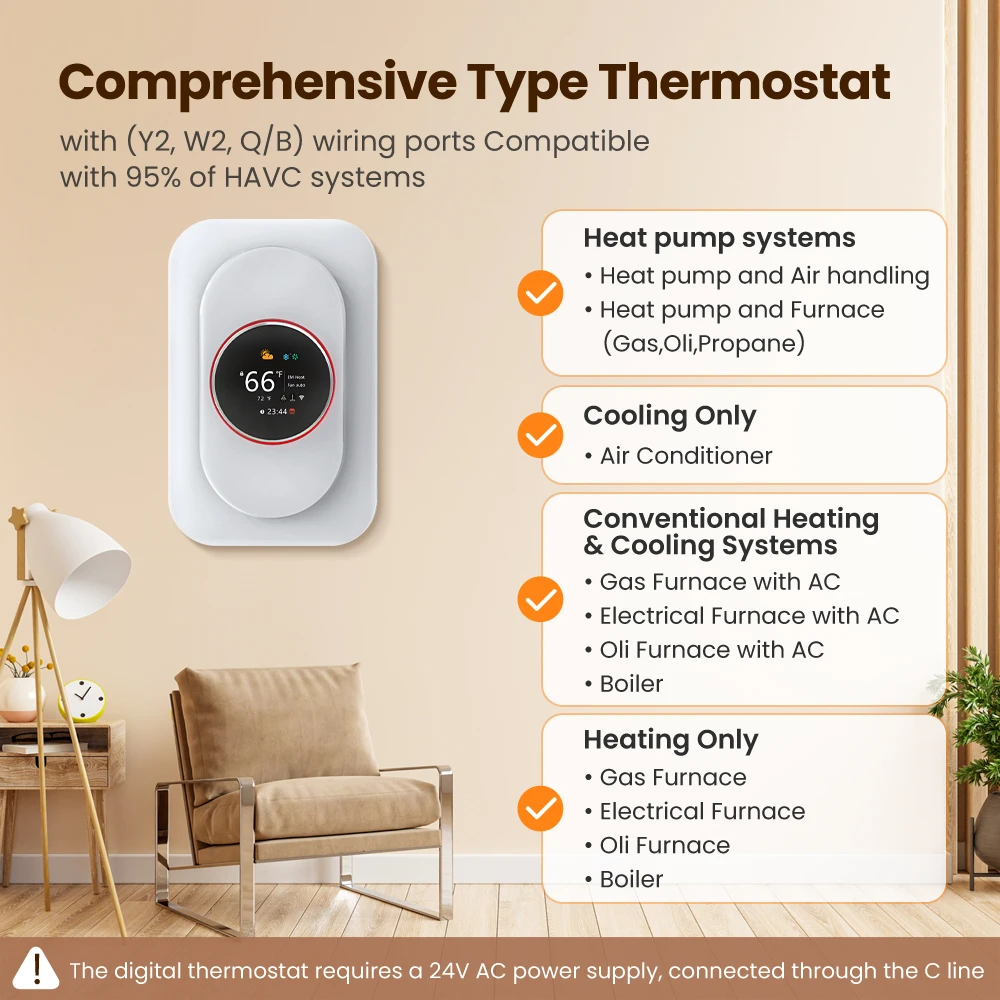 【종합 온도 조절 장치】-HAVC 시스템의 95% 호환 가능한 (Y2, W2, Q/B) 배선 포트 포함