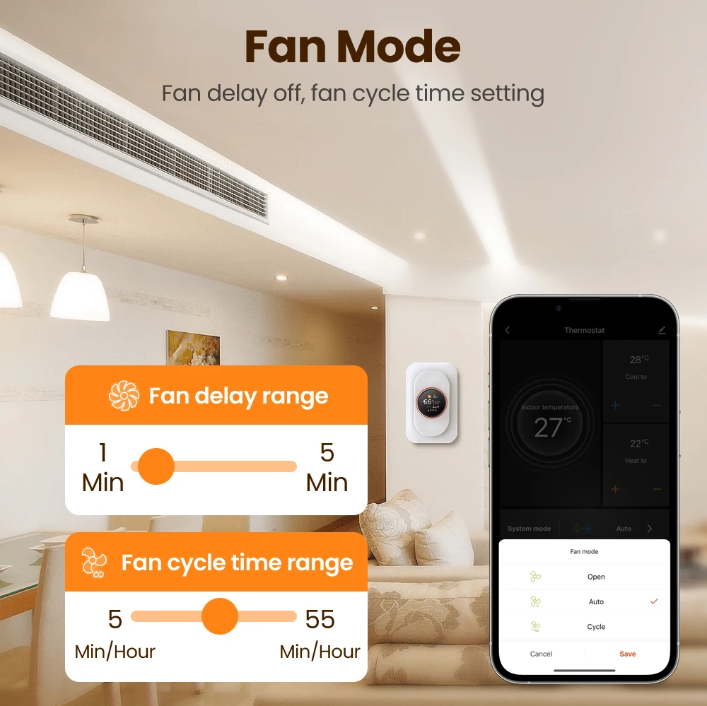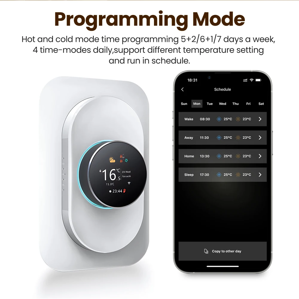 HAVC 시스템 용 AVATTO WiFi 스마트 노브 온도 조절기 히트 펌프/에어컨/보일러 시스템은 Alexa,Google Home, Alice와 함께 작동합니다.