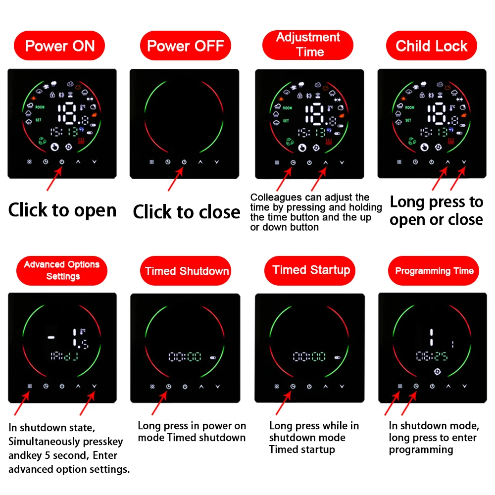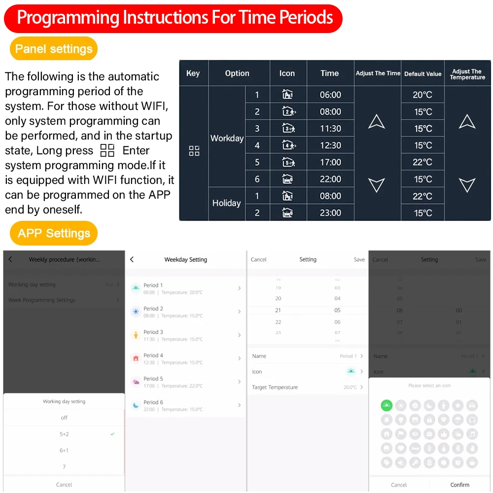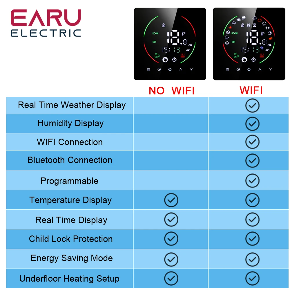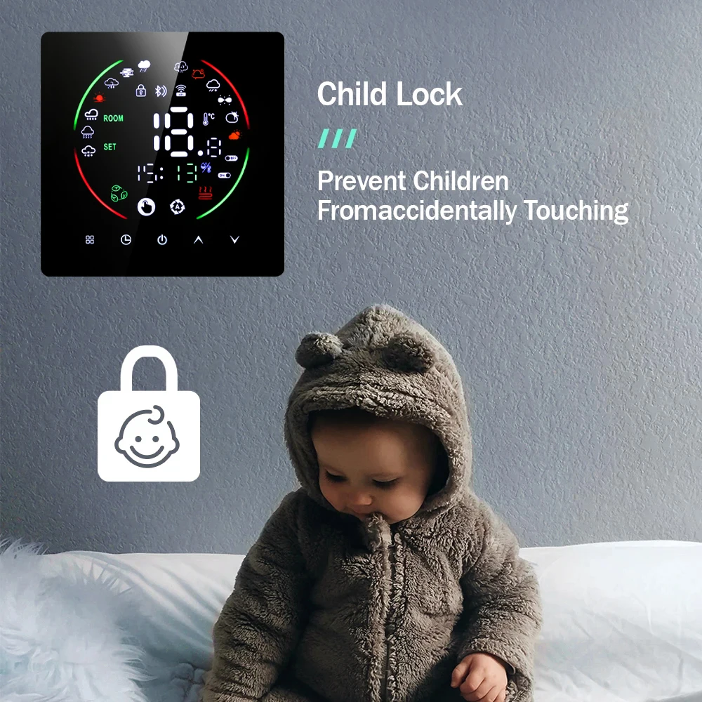 지능형 디지털 온도 조절기실내 온도 제어 및 가정용 온도 제어에 적합한 바닥 난방 시스템으로 주변 온도와 설정 온도의 비교를 감지하여 바닥 난방 장비의 작동 상태를 제어합니다. 에너지 절약 목표를 달성하면서 편안함을 향상시킵니다. 디지털 서모 스탯, 마이크로 컴퓨터 제어 기술을 채택하고 터치 버튼을 전체 화면으로 표시합니다. 디자인은 우아하고 관대하며 사용하기 쉽습니다. 온도 컨트롤러는 수동 및 자동 기능, 프로그래밍 가능한 기능, 상태 메모리 기능, 어린이 잠금 기능을 갖추고 있으며 WIFI로 날씨와 습도를 얻을 수 있습니다.