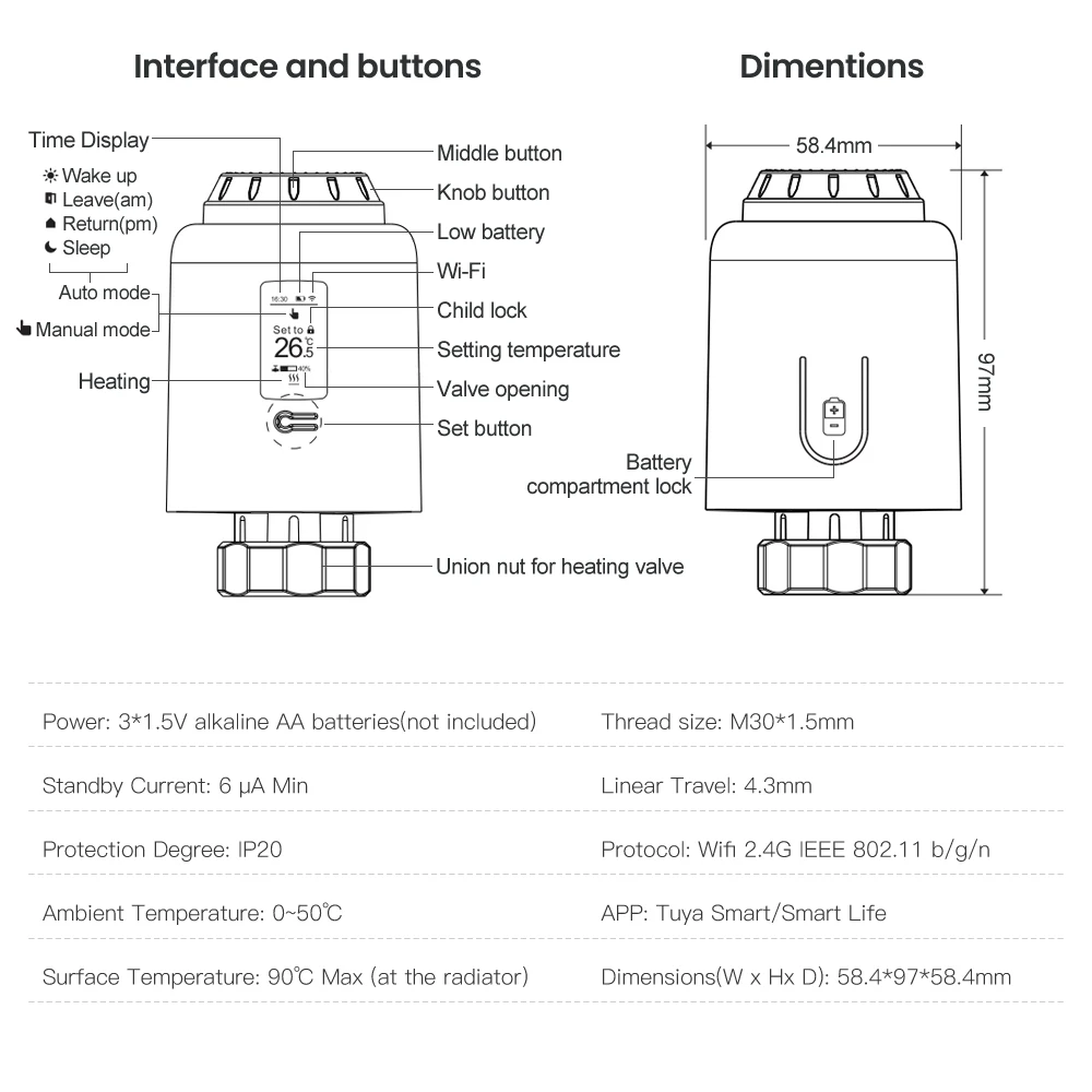 Tuya 스마트 ZigBee/와이파이 온도 조절기 라디에이터 TRV 프로그래밍 가능 온도 조절 액추에이터 난방 온도 컨트롤러 Alexa Google