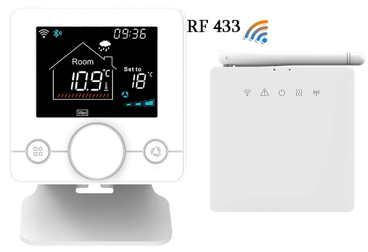 WBG833 무선 허브 컨트롤러는 가스 보일러, 순환 펌프 또는 전기 액추에이터를 제어하는 데 적합합니다. 실내 온도를 제어하기 위해 서모 스탯을 독립적으로 사용하는 여러 개의 방, 각 서모 스탯은 매니 폴드의 각 분기 전기 열 액추에이터를 개별적으로 제어하여 쾌적한 온도 제어 및 에너지 소비 감소를위한 독립적 인 온도 제어를 달성합니다.