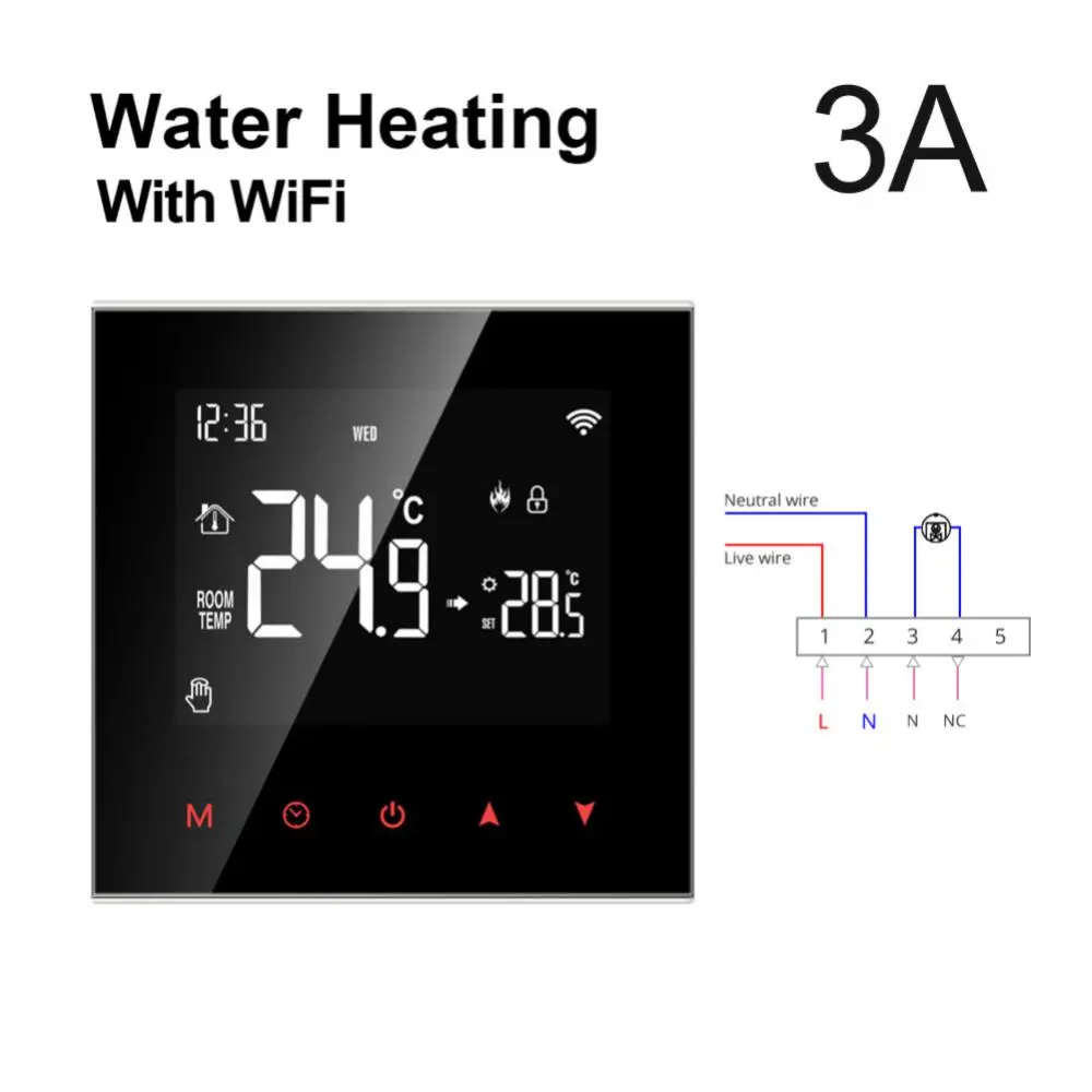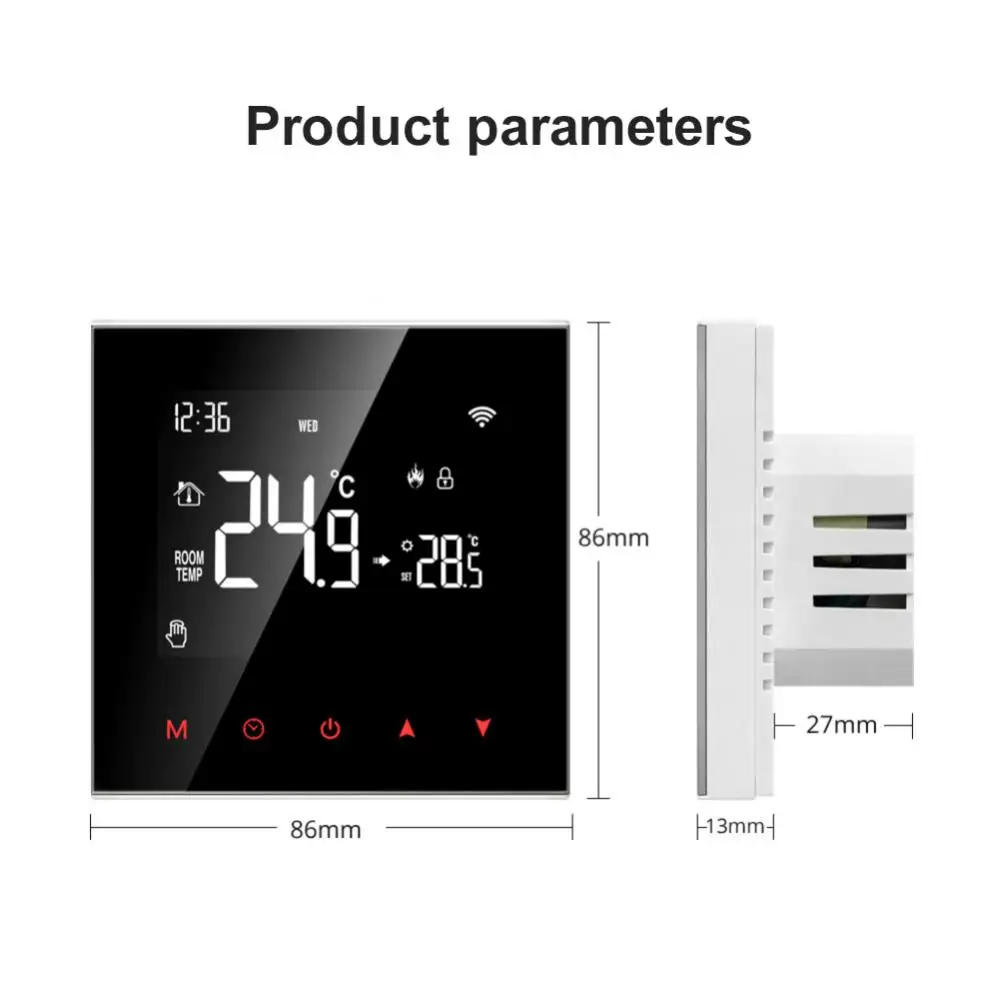 서모 스탯에는 유리 거울 패널이 있기 때문에 환경에 따라 색상이 변경 될 수 있습니다. 벽에 장착하고 전원을 켜면 검은 색으로 변합니다.