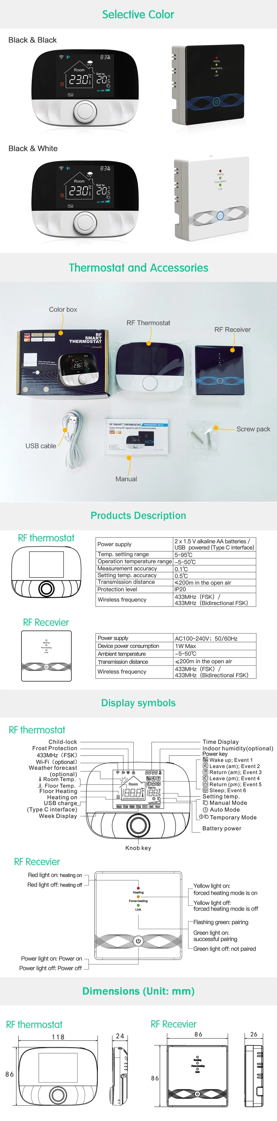 스마트 RF 무선 온도조절기 와이파이 투야 가스 보일러 난방 온도 리모컨 리시버 프로그래밍 가능 온도 조