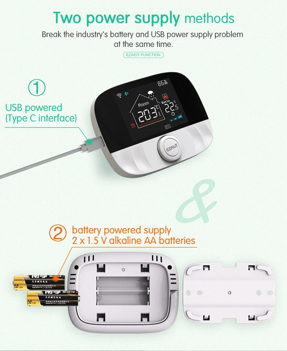 온도 조절기 전원 공급 장치: 2*1.5V 알카라인 배터리/USB 전원 공급 장치 (Type-c 인터페이스)