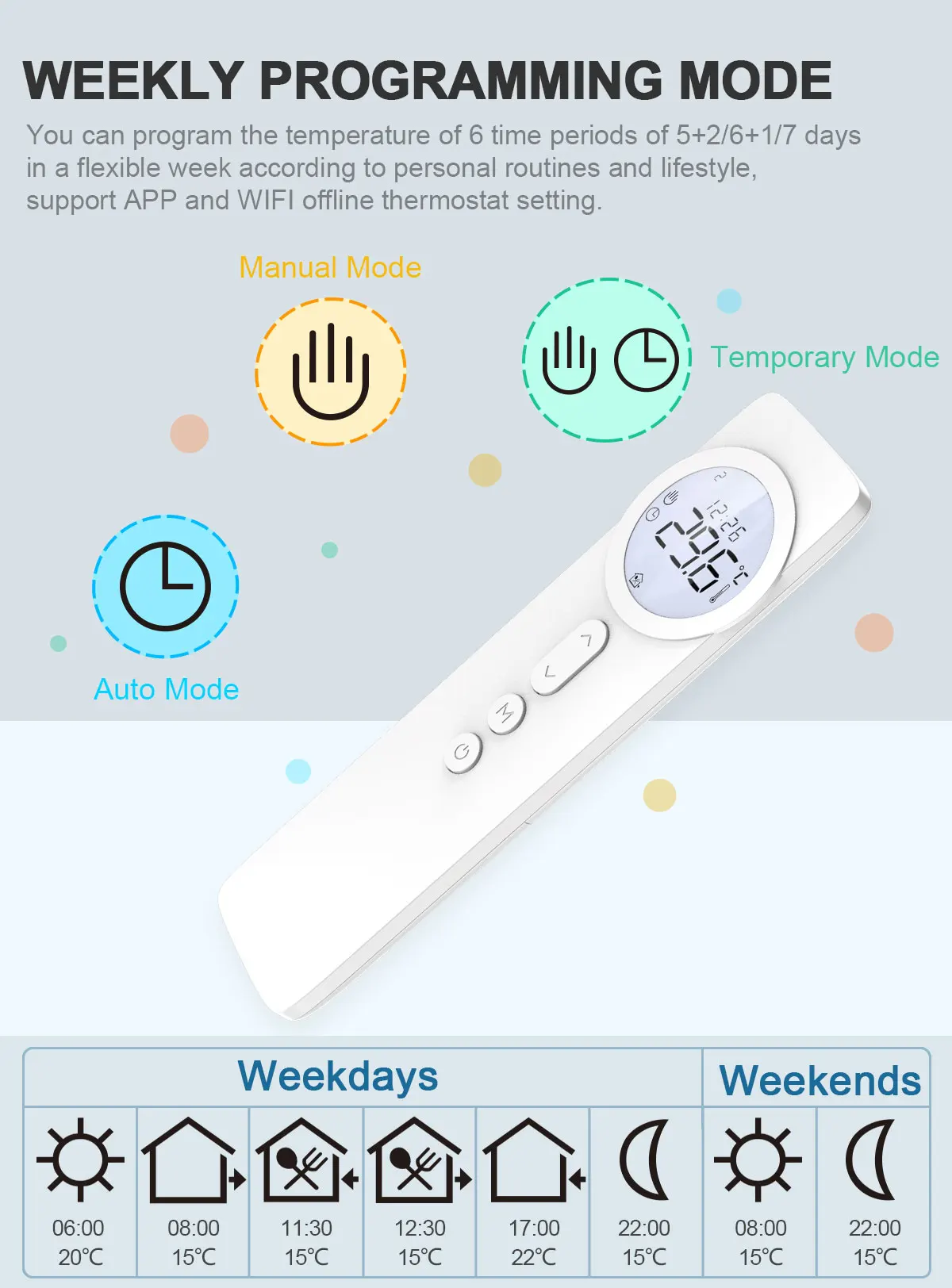 5 + 2/6 + 1/7 일 주 6 시간 온도, APP 및 WIFI 오프라인 온도 조절 설정을 지원할 수 있습니다.