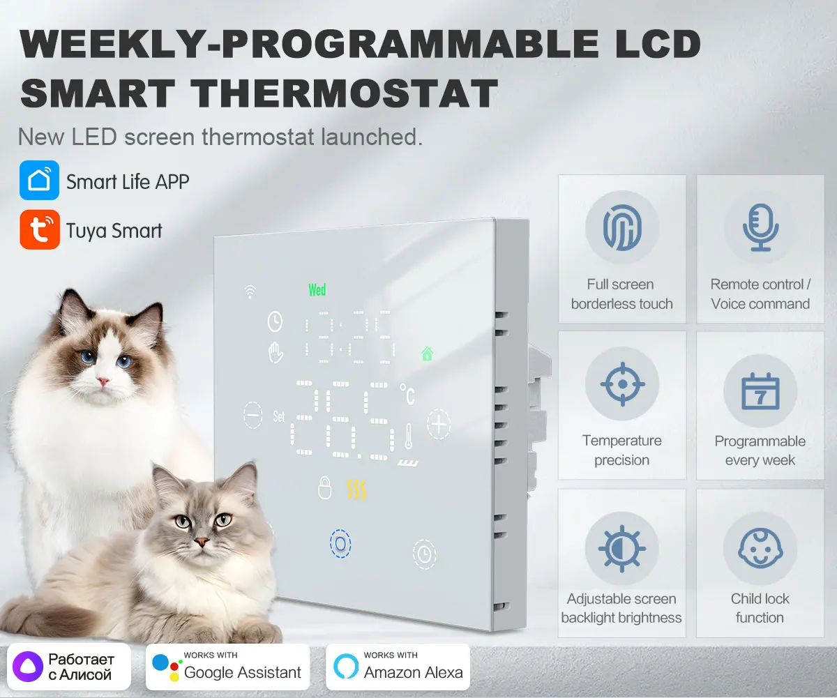 ? 알렉사, 구글, Yandex 보이스와 호환:이 스마트 서모 스탯은 Alexa, Google 및 Yandex Voice와 완벽하게 통합되어 편리하고 편리하게 음성 명령을 통해 온도 설정을 원격으로 제어 할 수 있습니다.