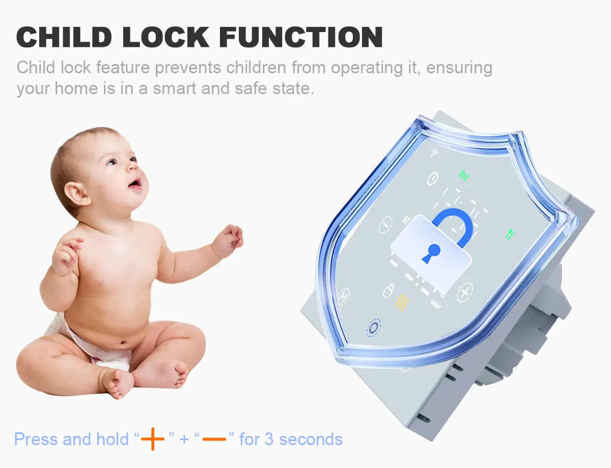 어린이 잠금 기능은 어린이의 작동을 방지하여 집이 똑똑하고 안전한 상태임을 보장합니다.